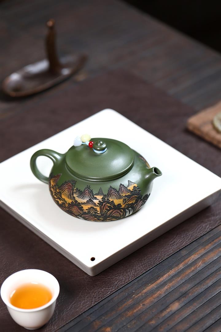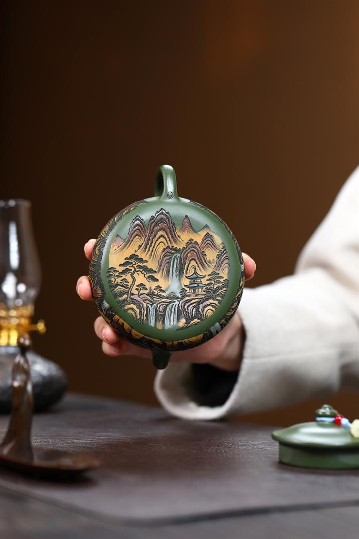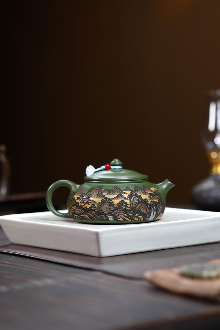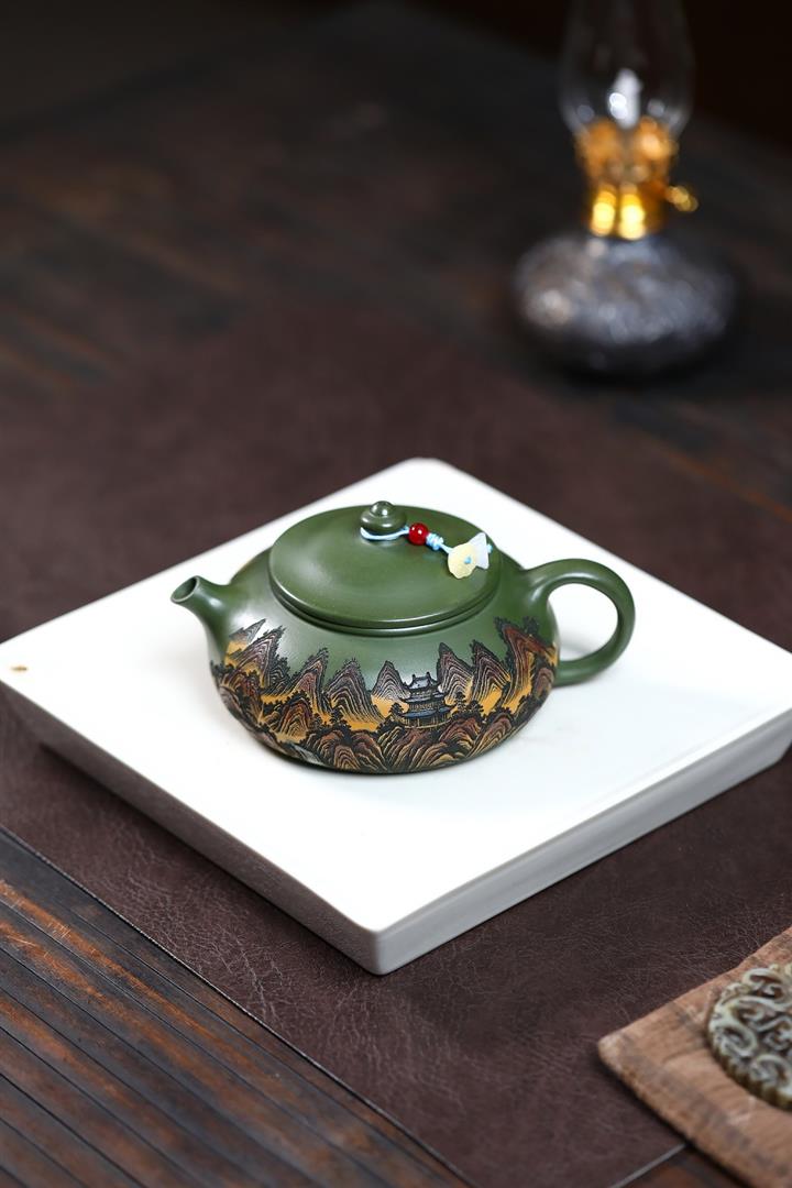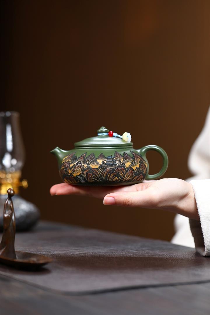 230cc原礦優質綠泥山河寒江泡茶壺POT9369