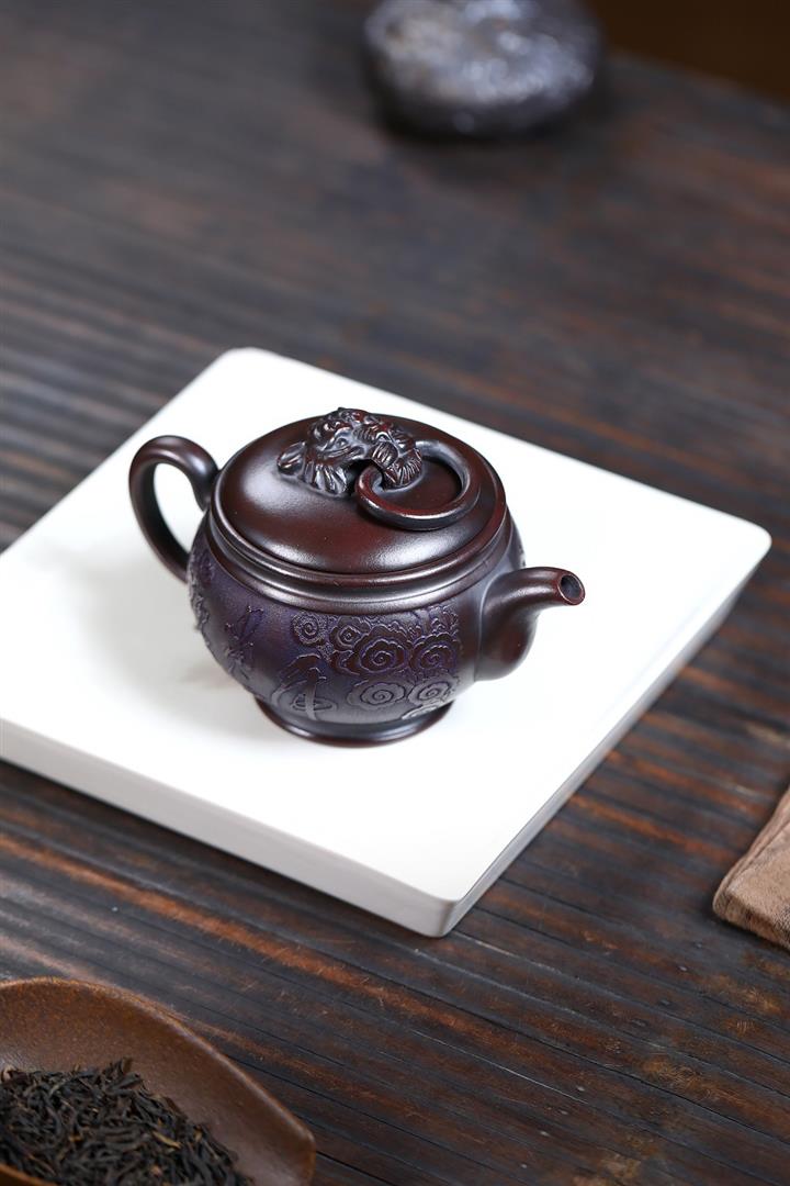 280cc原礦石紅泥滿刻松趣丹霞漢瓦茶壺POT8403