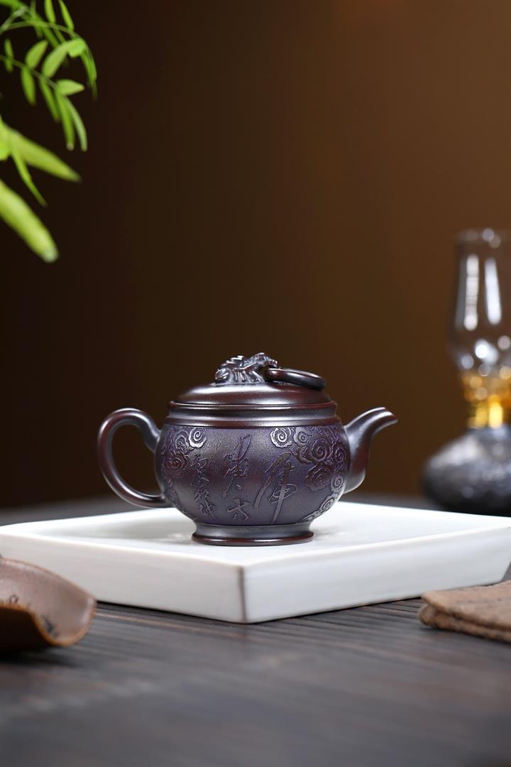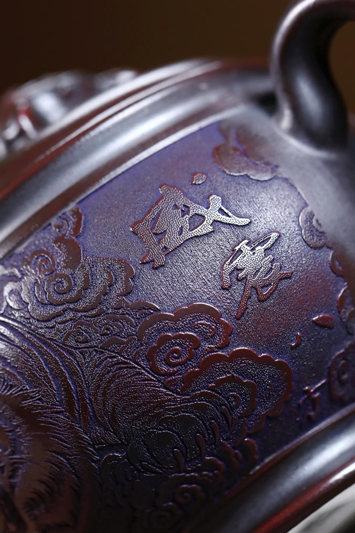 460cc原礦石紅泥滿刻鐘鳴山河茶壺POT8402