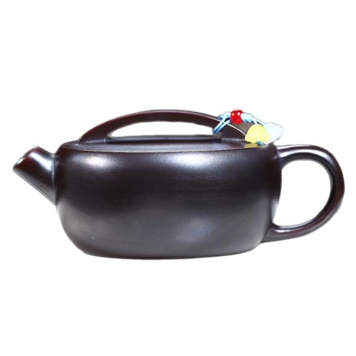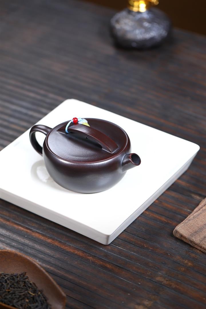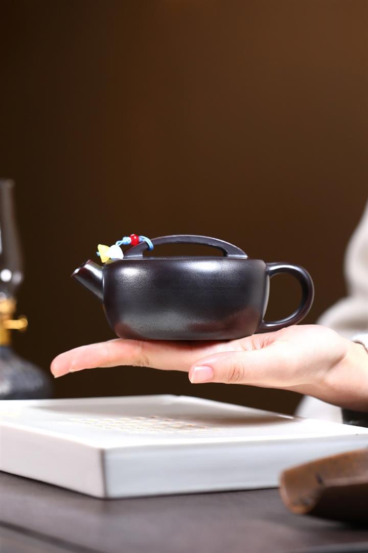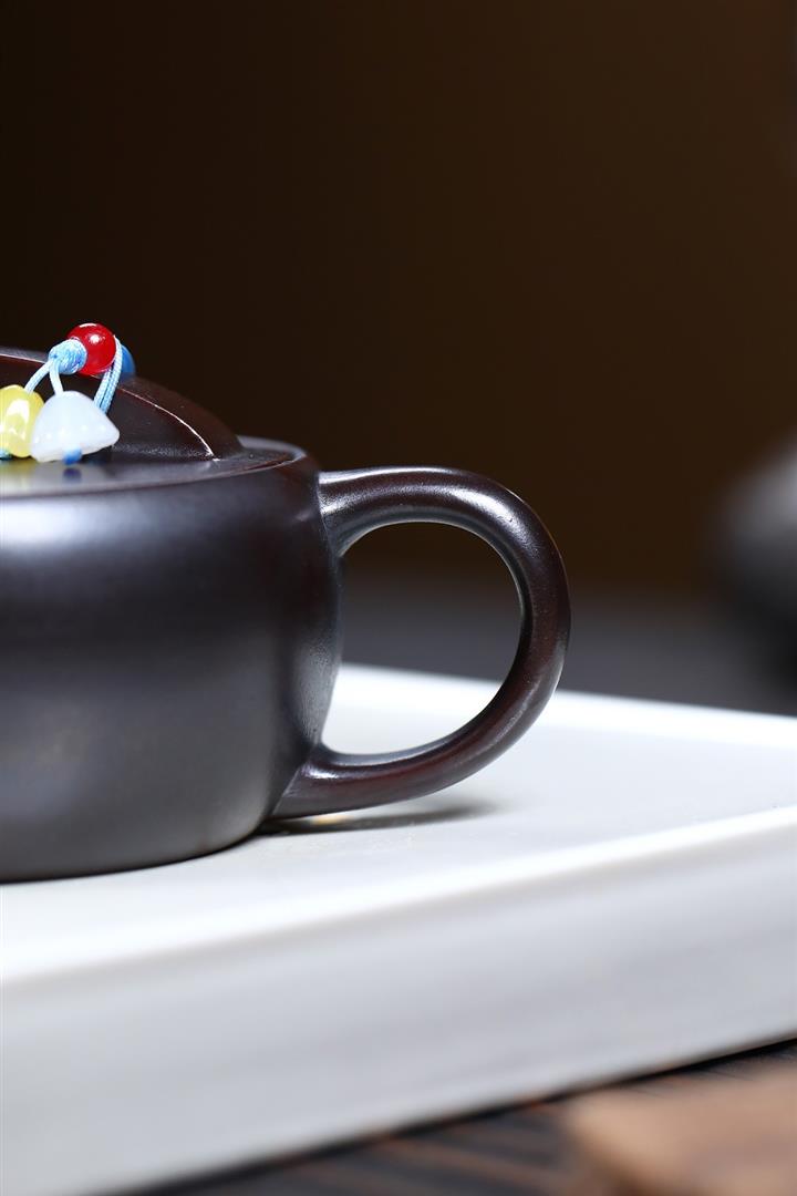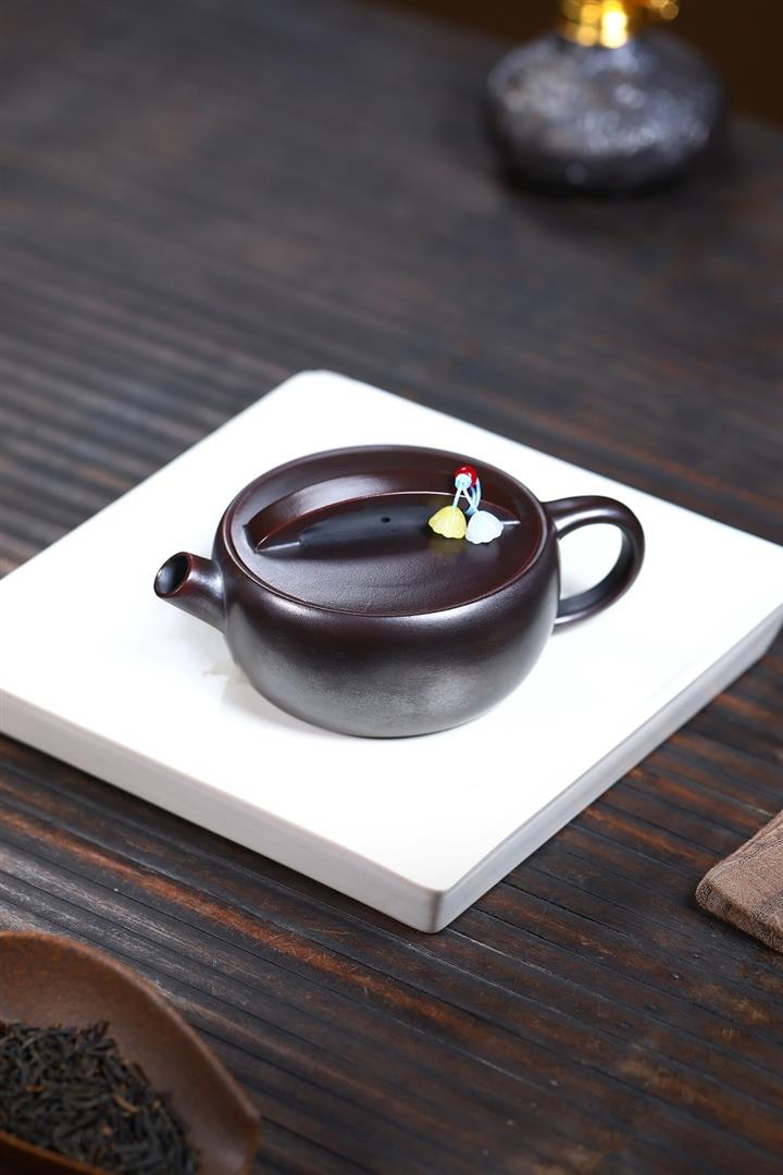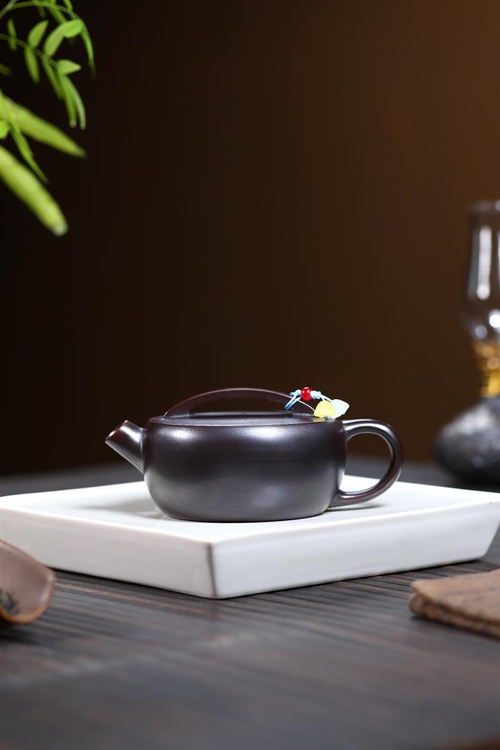原礦黑朱泥牡丹扁腹家用茶壺紫砂壺200cc pot3427