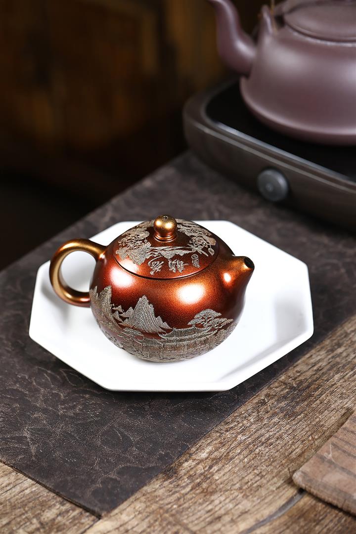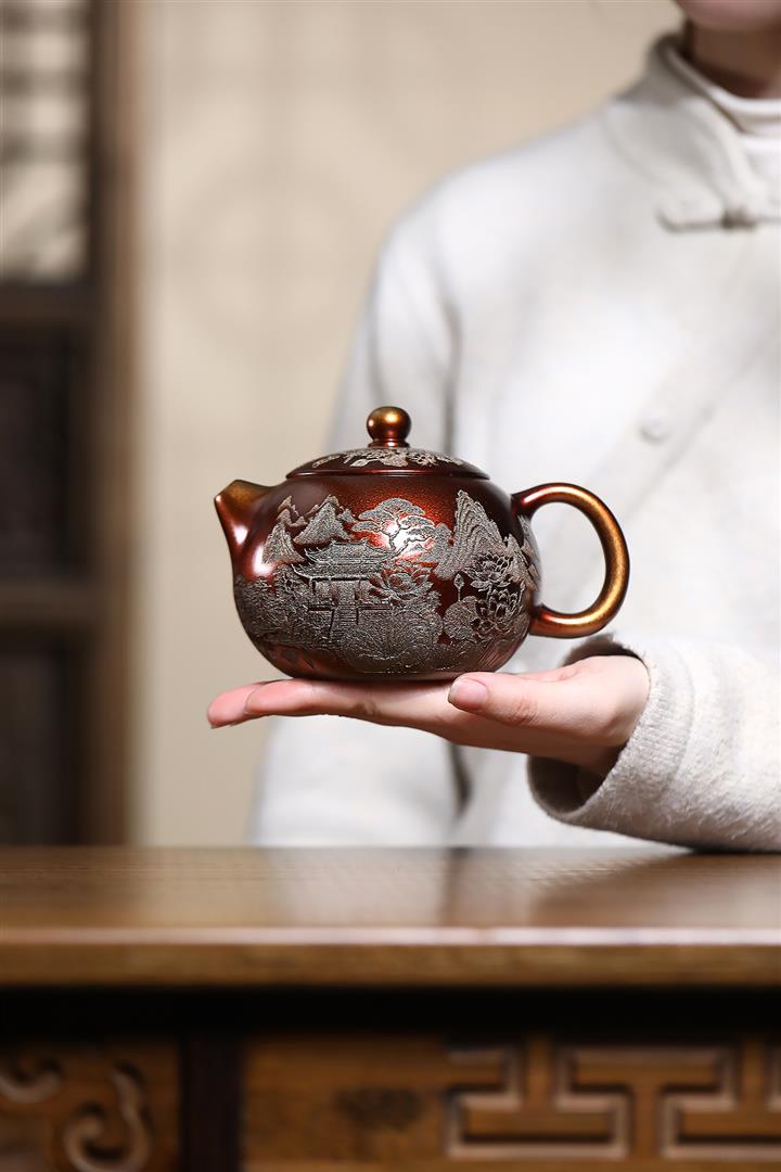 家藏大紅袍魚趣君德紫砂壺POT5758