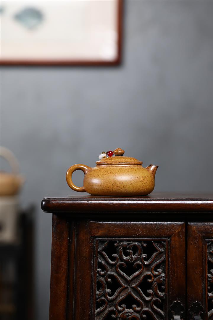【作品介紹】此款壺形線條流暢,壺把,壺嘴,壺身壹氣呵成栩栩如生,是收藏把玩的好壺,泥料色澤古樸典雅,日久使用,漸露鋒芒,養成變化快,溫潤莊重,用其泡茶,使用的年代久,壺身就溫潤,泡出來的茶湯也就醇郁芳馨。
