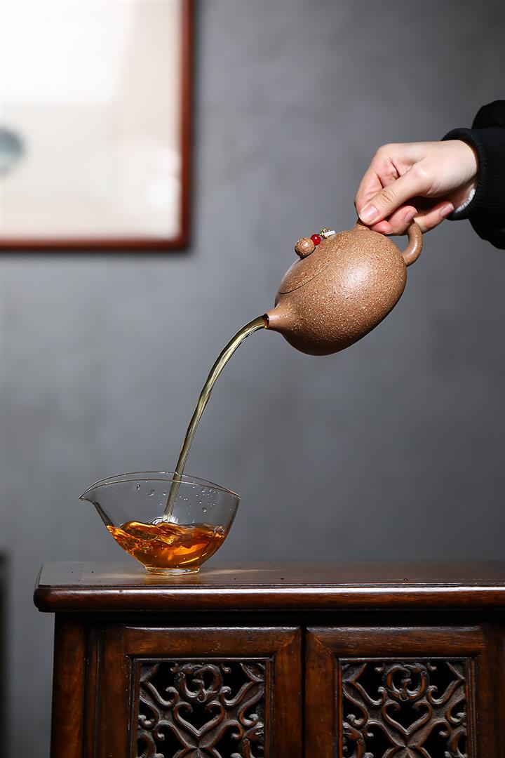 【泥料特點】砂土氣重,似淳實農民,日久使用,漸露鋒芒,養成變化,溫潤莊重。紫砂是壹種雙重氣孔結構的多孔性材質,氣孔微細,密度高。用紫砂壺沏茶,不失原味,且香不渙散,得茶之真香真味。紫砂使用越久,壺身色澤越發光亮照人,氣韻溫雅。紫砂壺長久使用器身會因撫摸擦拭,變得越發溫潤光澤。