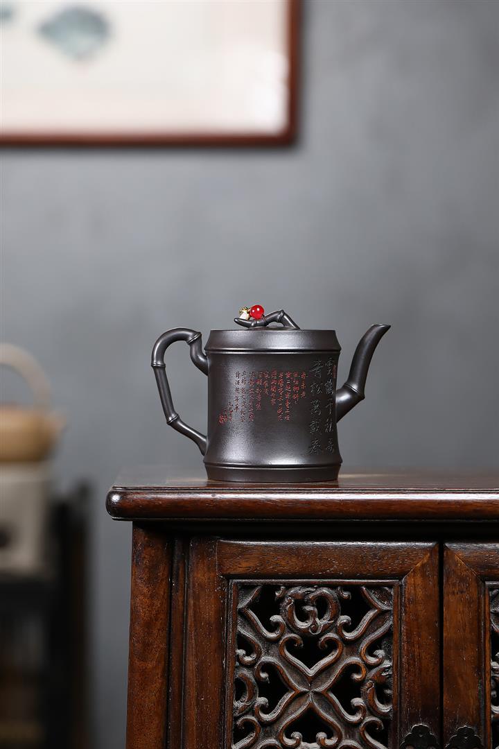 【作品介紹】此款壺形線條流暢,壺把,壺嘴,壺身壹氣呵成栩栩如生,是收藏把玩的好壺,泥料色澤古樸典雅,日久使用,漸露鋒芒,養成變化快,溫潤莊重,用其泡茶,使用的年代久,壺身就溫潤,泡出來的茶湯也就醇郁芳馨。