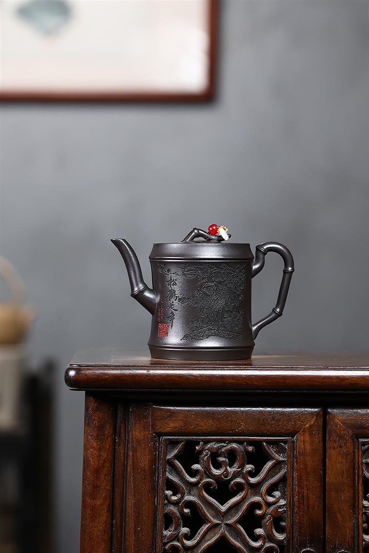 280cc原礦石黃松鶴延年竹節泡茶壺POT9439
