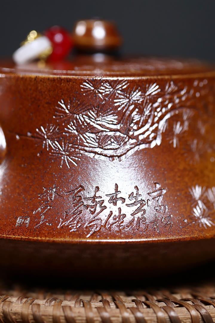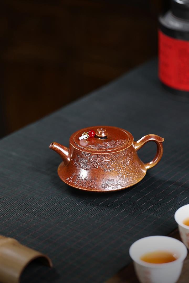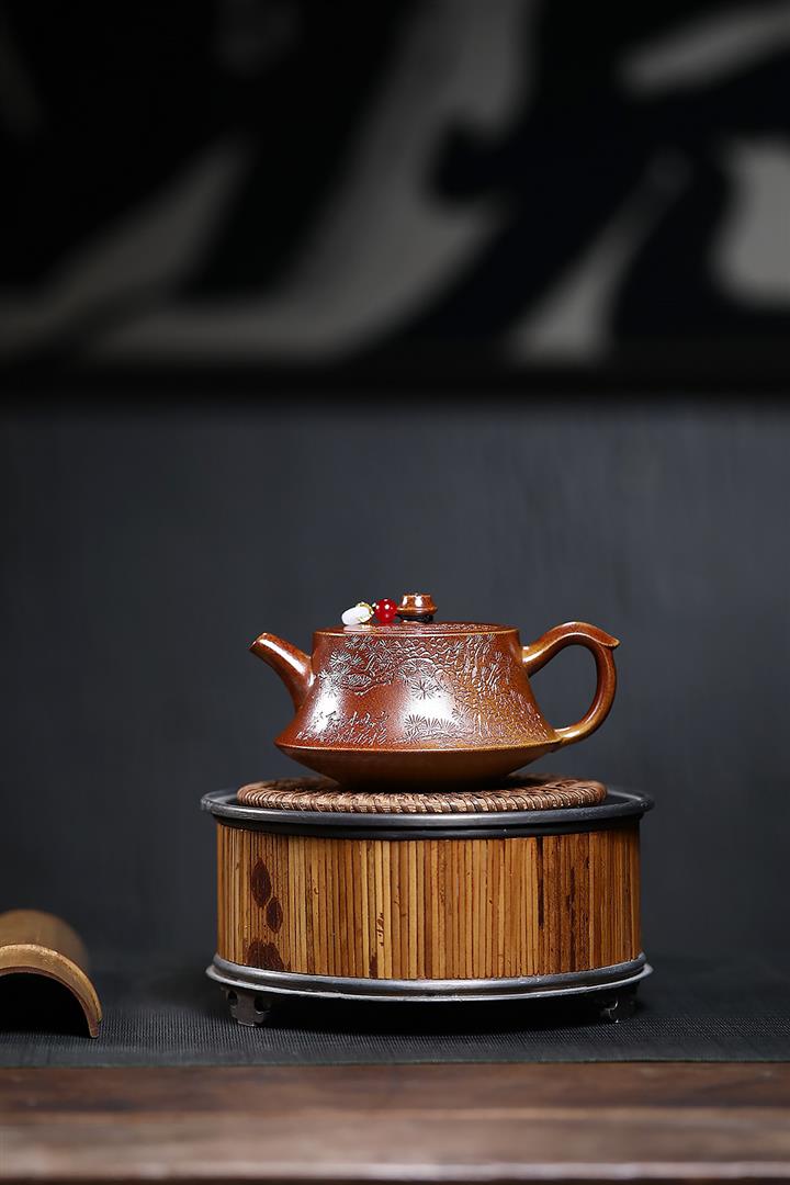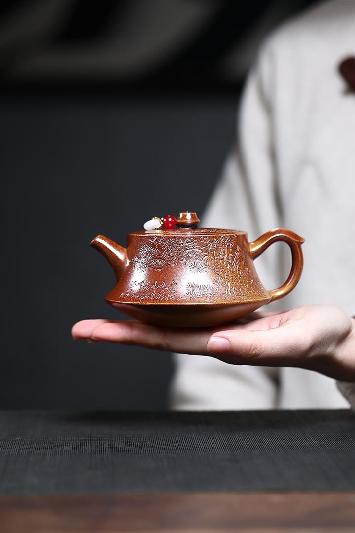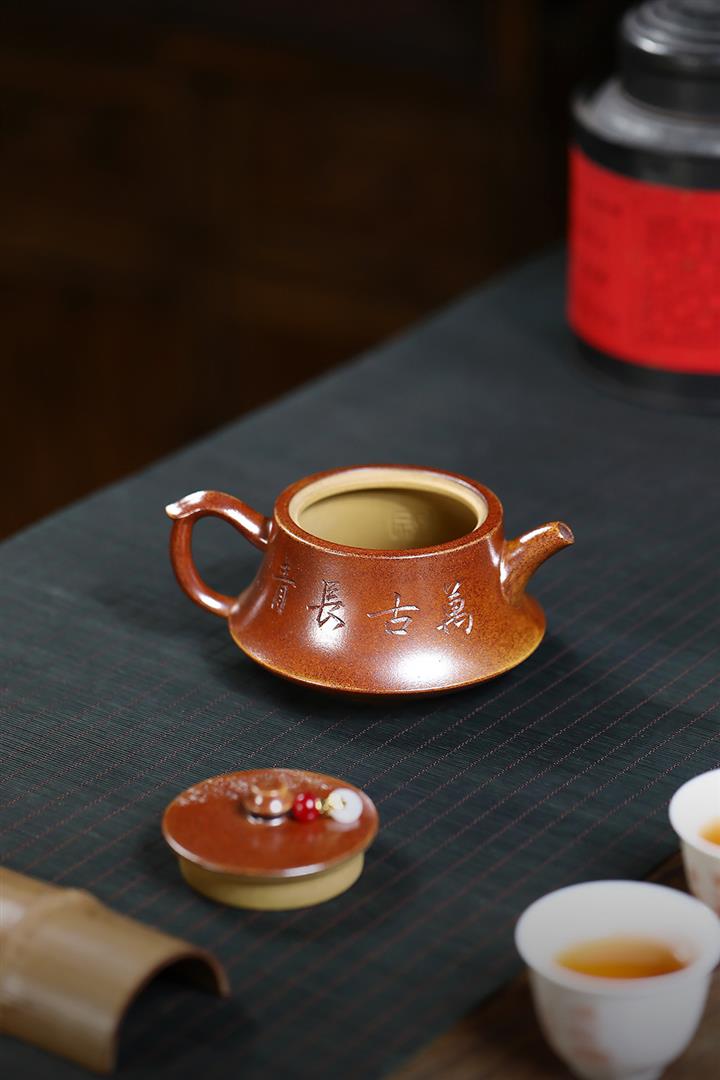 【泥料特點】砂土氣重,似淳實農民,日久使用,漸露鋒芒,養成變化,溫潤莊重。紫砂是壹種雙重氣孔結構的多孔性材質,氣孔微細,密度高。用紫砂壺沏茶,不失原味,且香不渙散,得茶之真香真味。紫砂使用越久,壺身色澤越發光亮照人,氣韻溫雅。紫砂壺長久使用器身會因撫摸擦拭,變得越發溫潤光澤。