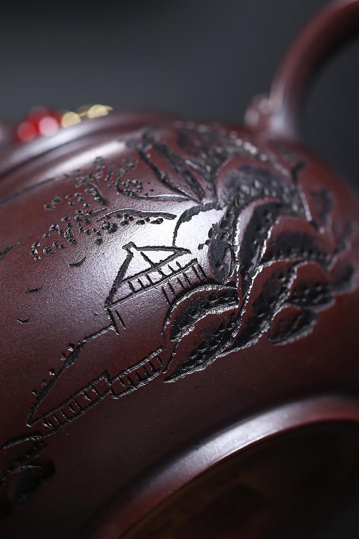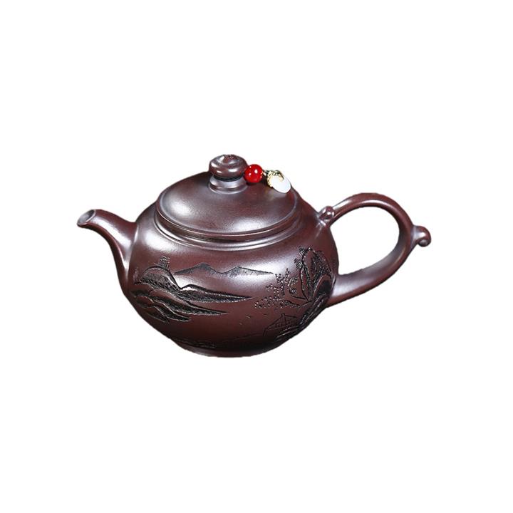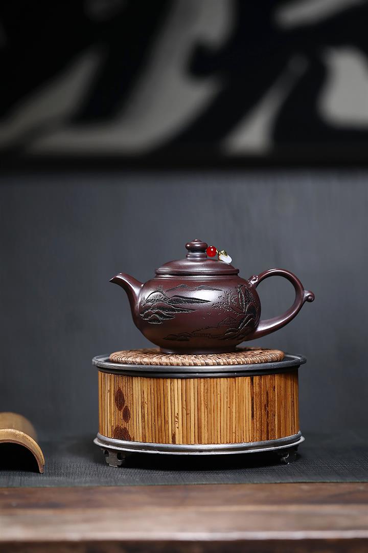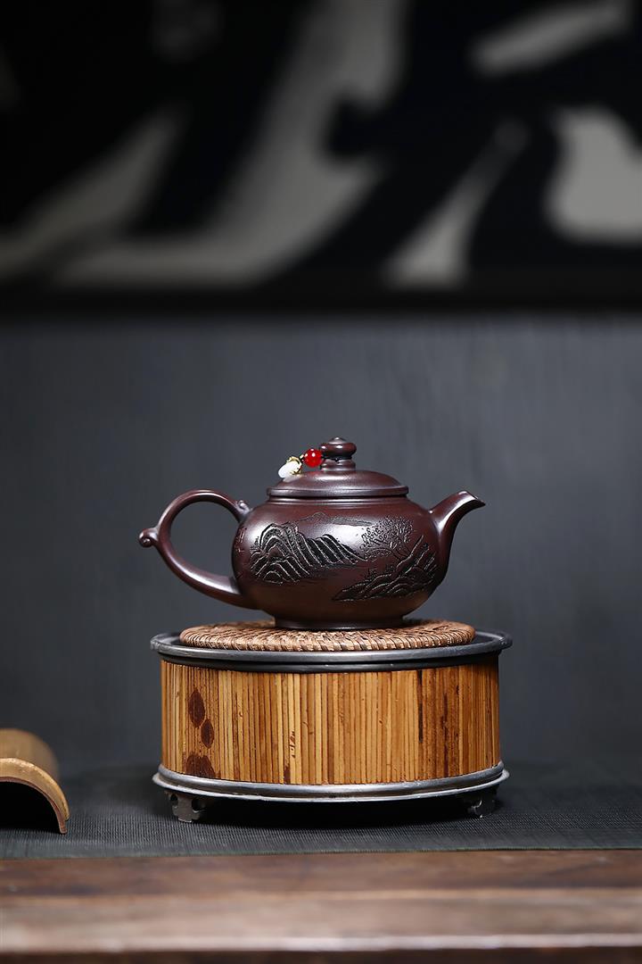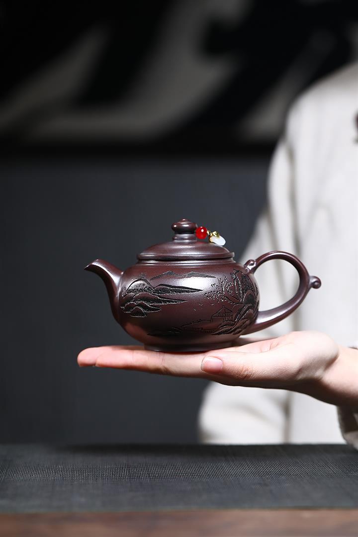 270cc原礦龍山古烏泥觀山水平茶壺POT9473