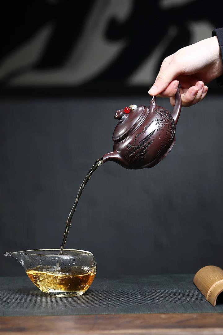 【泥料特點】砂土氣重,似淳實農民,日久使用,漸露鋒芒,養成變化,溫潤莊重。紫砂是壹種雙重氣孔結構的多孔性材質,氣孔微細,密度高。用紫砂壺沏茶,不失原味,且香不渙散,得茶之真香真味。紫砂使用越久,壺身色澤越發光亮照人,氣韻溫雅。紫砂壺長久使用器身會因撫摸擦拭,變得越發溫潤光澤。
