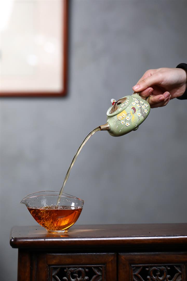 【泥料特點】砂土氣重,似淳實農民,日久使用,漸露鋒芒,養成變化,溫潤莊重。紫砂是壹種雙重氣孔結構的多孔性材質,氣孔微細,密度高。用紫砂壺沏茶,不失原味,且香不渙散,得茶之真香真味。紫砂使用越久,壺身色澤越發光亮照人,氣韻溫雅。紫砂壺長久使用器身會因撫摸擦拭,變得越發溫潤光澤。