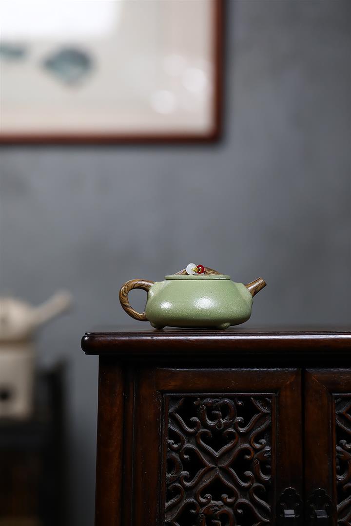 200cc原礦豆青砂絞泥喜上梅梢泡茶壺POT9479