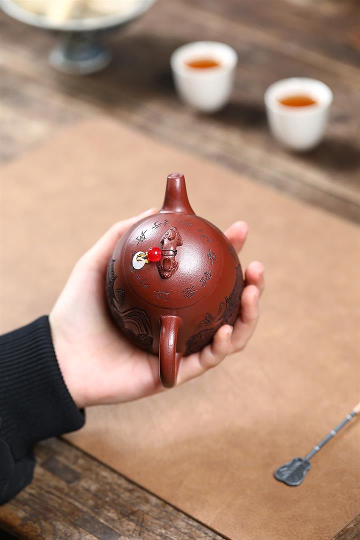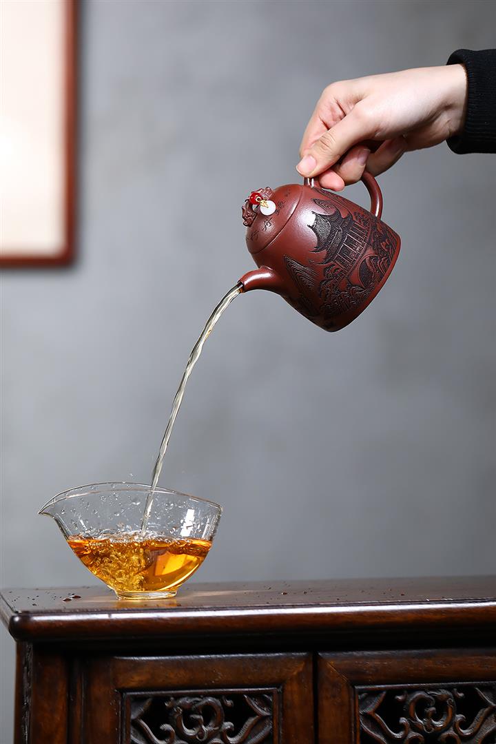 【作品介紹】此款壺形線條流暢,壺把,壺嘴,壺身壹氣呵成栩栩如生,是收藏把玩的好壺,泥料色澤古樸典雅,日久使用,漸露鋒芒,養成變化快,溫潤莊重,用其泡茶,使用的年代久,壺身就溫潤,泡出來的茶湯也就醇郁芳馨。