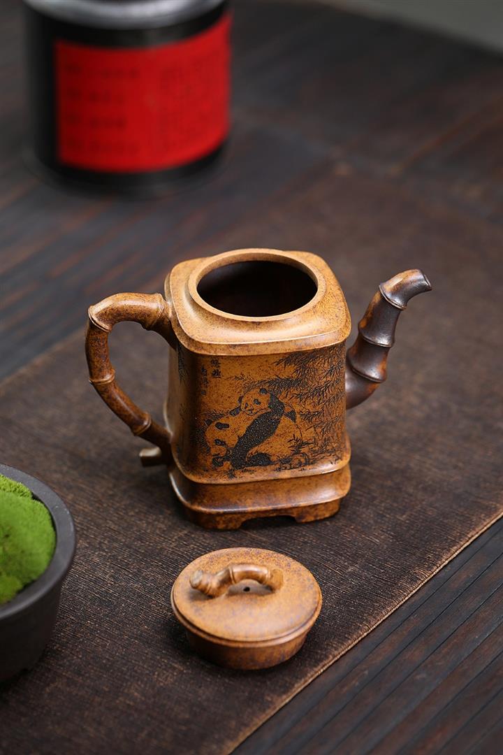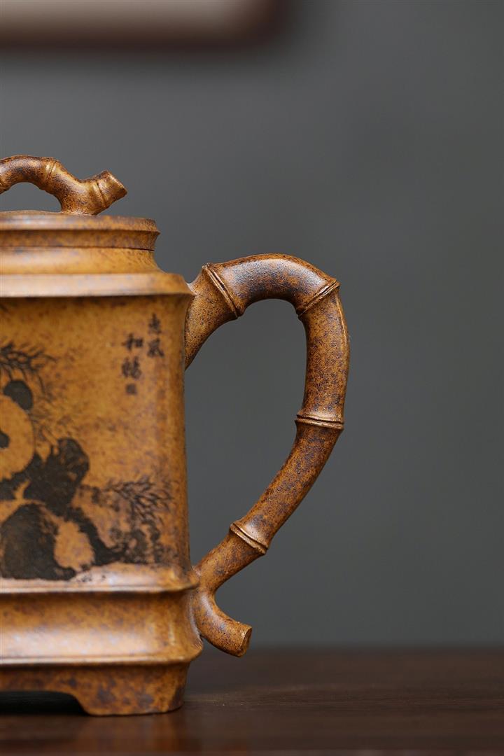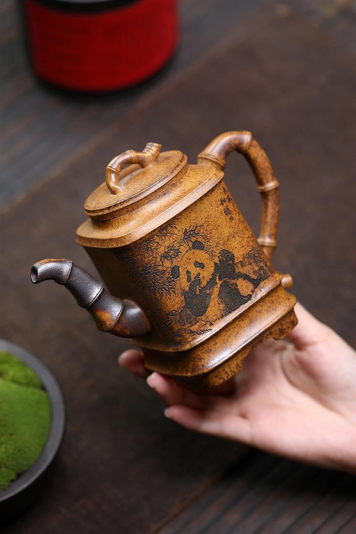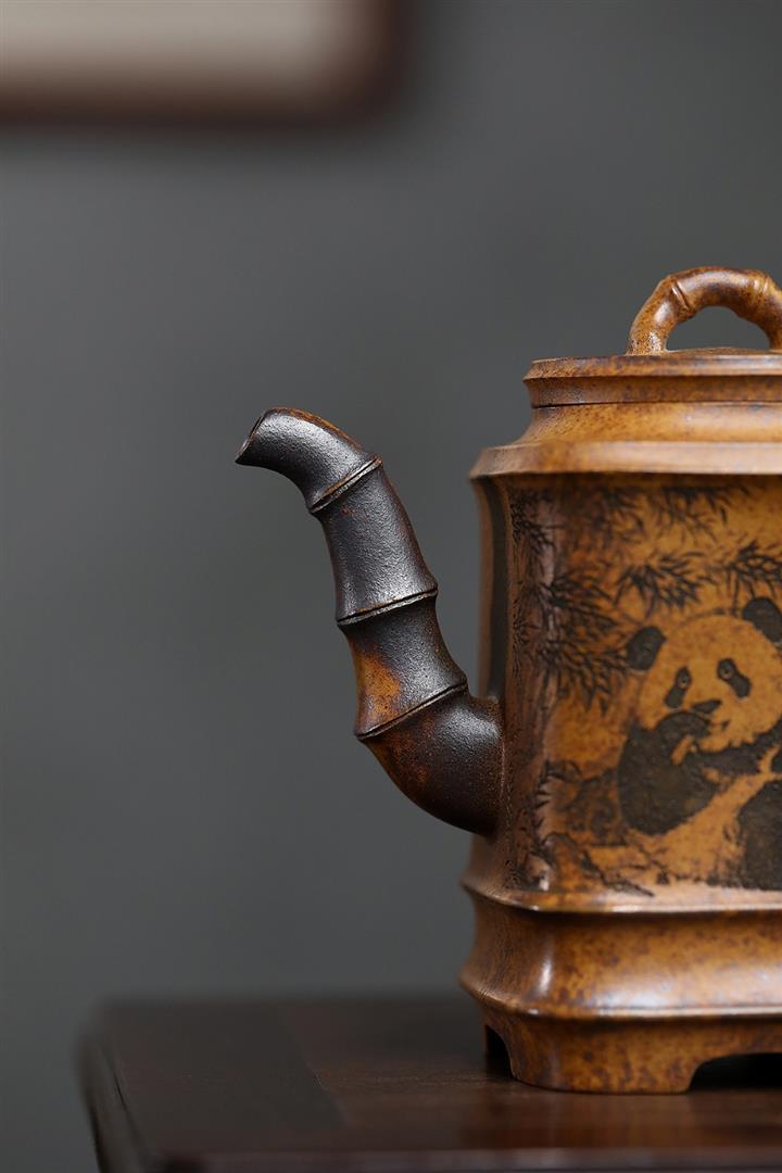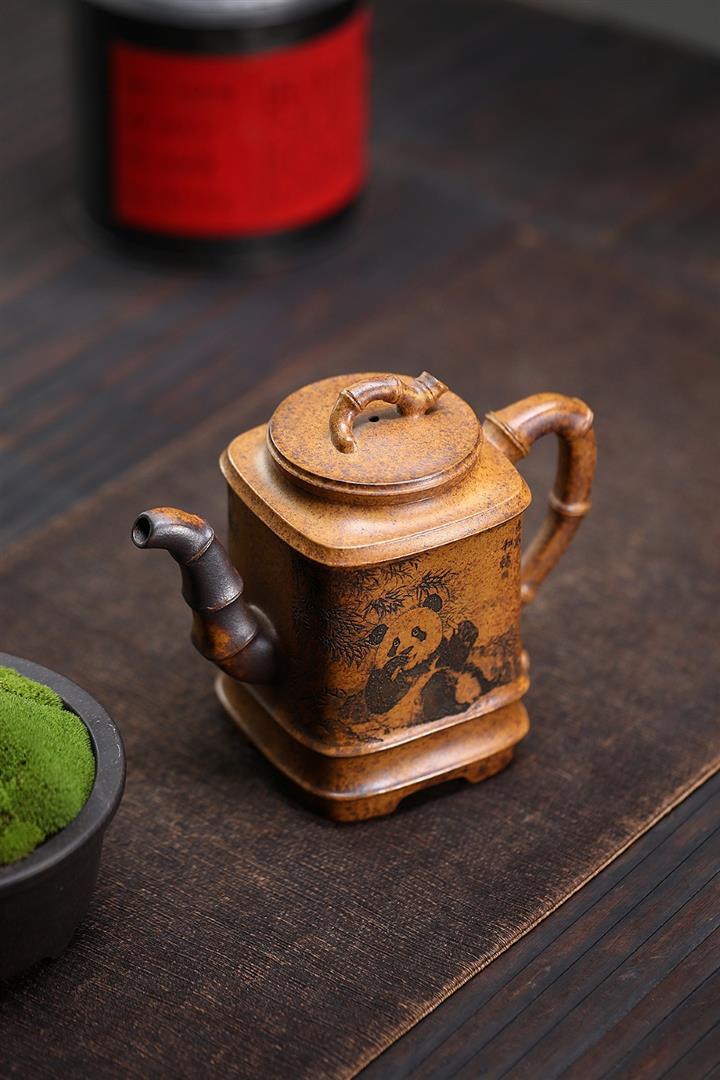 330cc原礦高溫段泥熊貓四方竹節泡茶壺POT9491