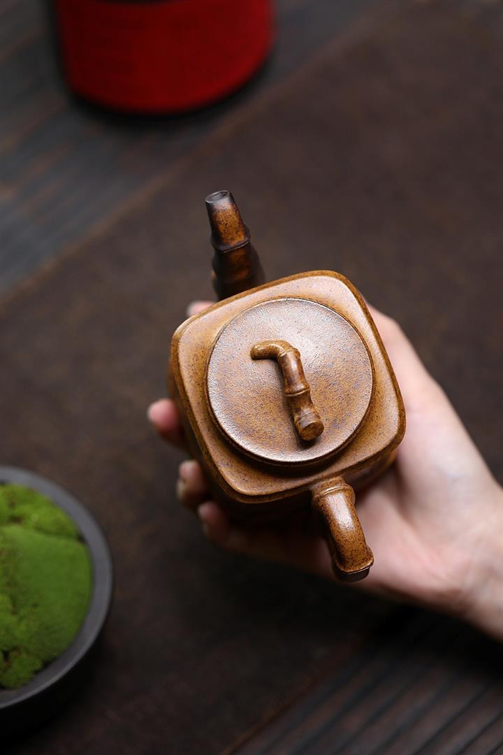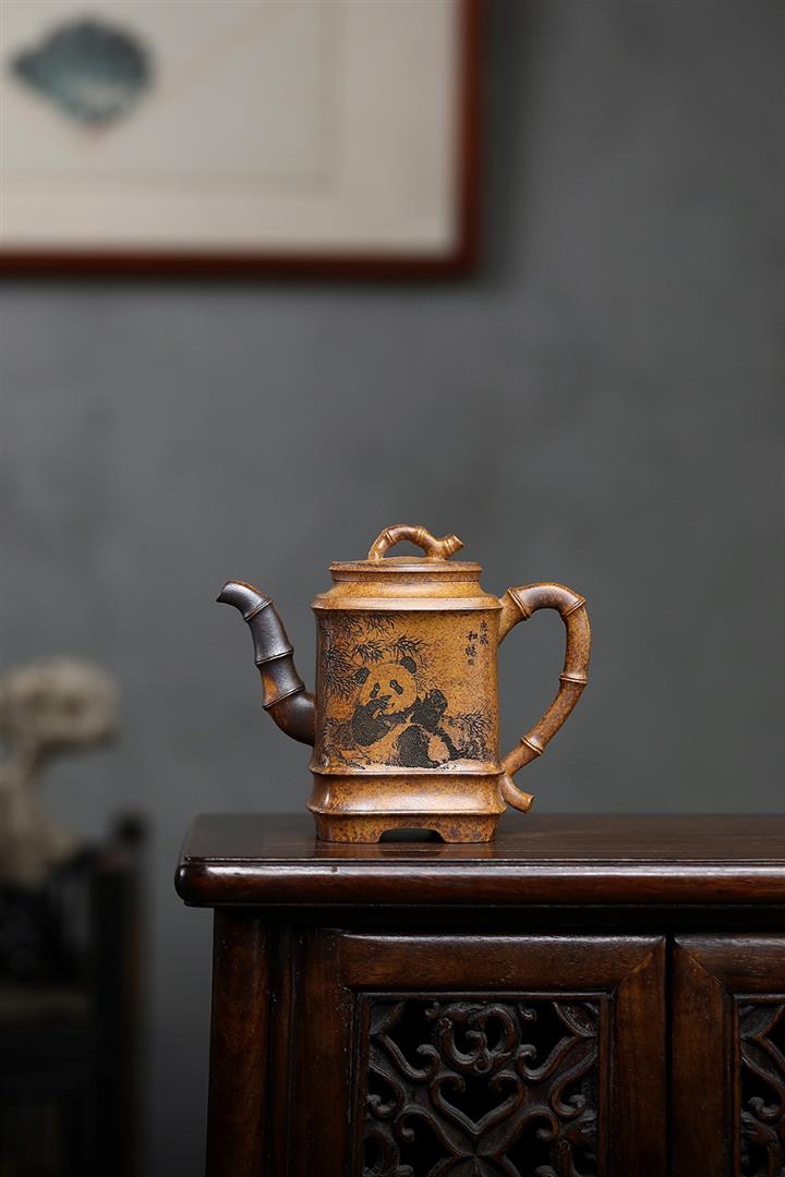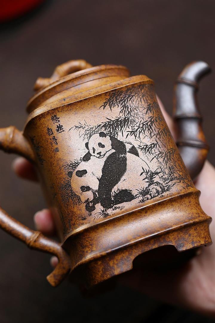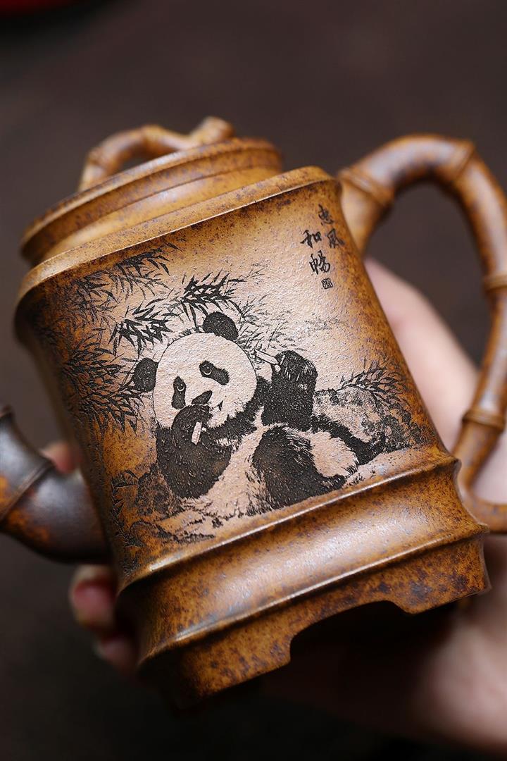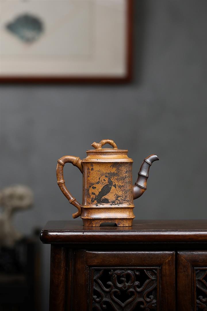 330cc原礦高溫段泥熊貓四方竹節泡茶壺POT9491