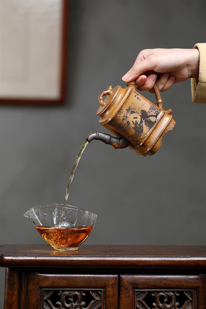 【泥料特點】砂土氣重,似淳實農民,日久使用,漸露鋒芒,養成變化,溫潤莊重。紫砂是壹種雙重氣孔結構的多孔性材質,氣孔微細,密度高。用紫砂壺沏茶,不失原味,且香不渙散,得茶之真香真味。紫砂使用越久,壺身色澤越發光亮照人,氣韻溫雅。紫砂壺長久使用器身會因撫摸擦拭,變得越發溫潤光澤。