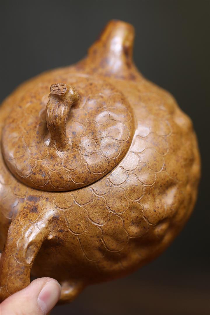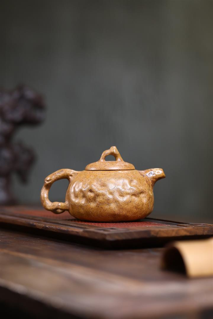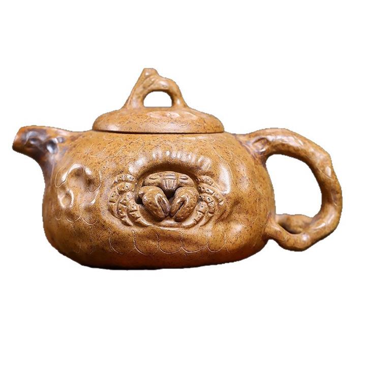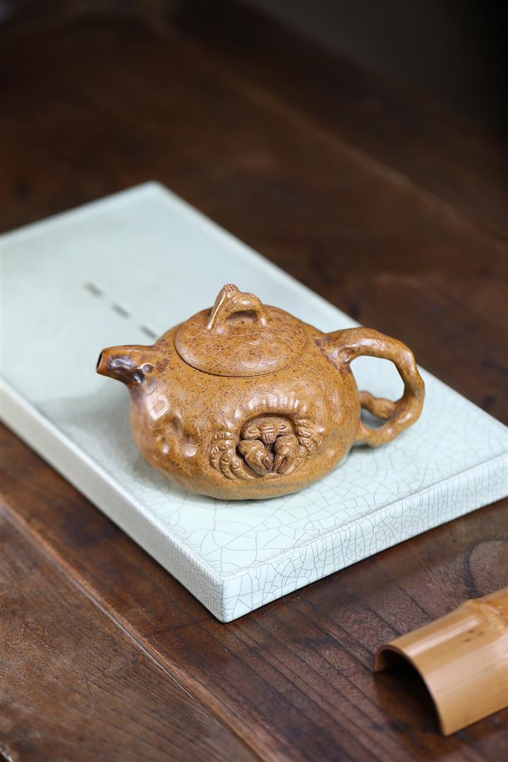 原礦青灰段泥金蟾獻瑞小漢瓦紫砂壺140cc pot3648