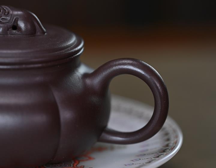 原礦紫砂君子蘭刻繪漢鐸茶壺POT7517
