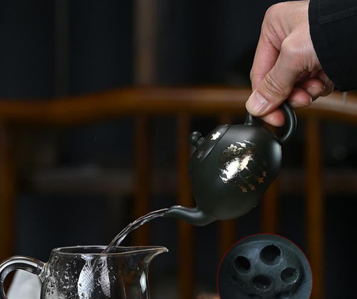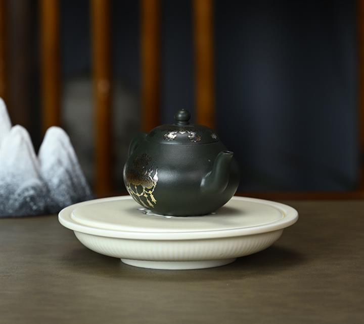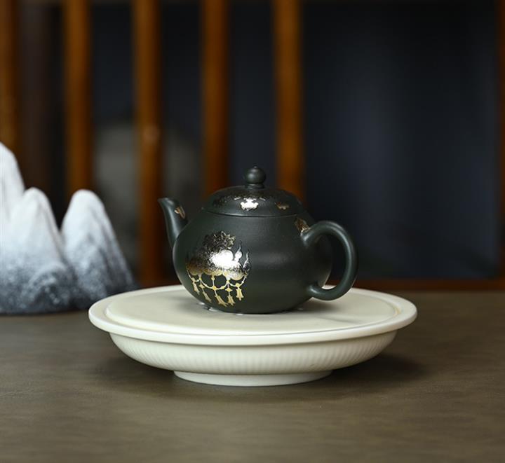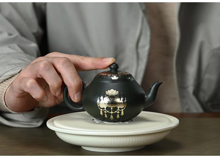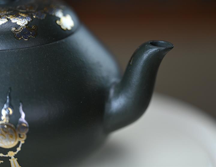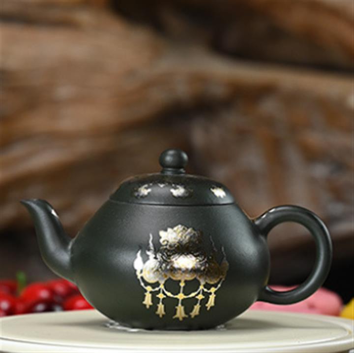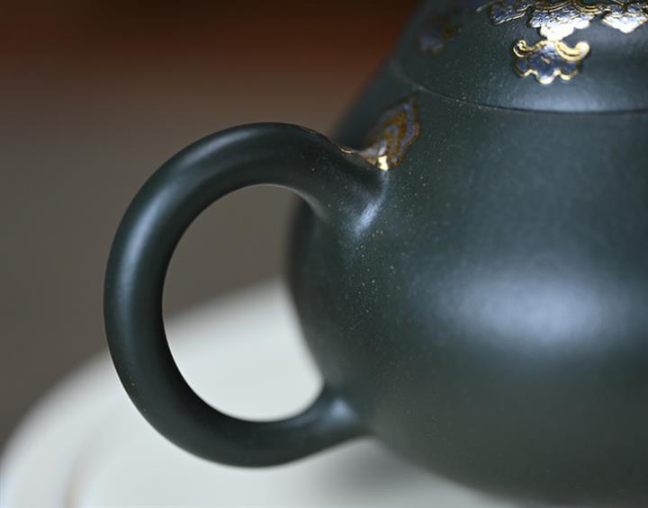 150cc原礦墨綠泥貼金君德泡茶壺POT9543