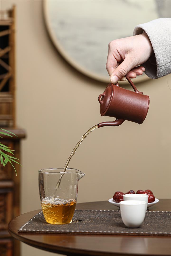 【泥料特點】砂土氣重,似淳實農民,日久使用,漸露鋒芒,養成變化,溫潤莊重。紫砂是壹種雙重氣孔結構的多孔性材質,氣孔微細,密度高。用紫砂壺沏茶,不失原味,且香不渙散,得茶之真香真味。紫砂使用越久,壺身色澤越發光亮照人,氣韻溫雅。紫砂壺長久使用器身會因撫摸擦拭,變得越發溫潤光澤。