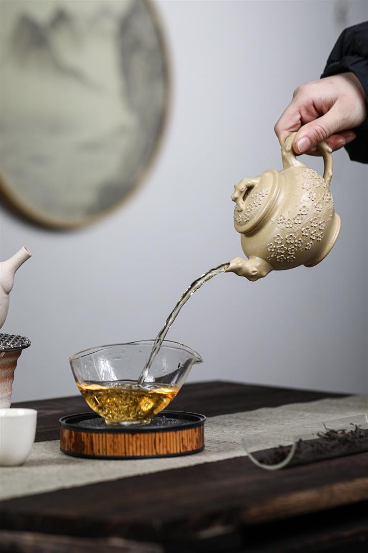 【泥料特點】砂土氣重,似淳實農民,日久使用,漸露鋒芒,養成變化,溫潤莊重。紫砂是壹種雙重氣孔結構的多孔性材質,氣孔微細,密度高。用紫砂壺沏茶,不失原味,且香不渙散,得茶之真香真味。紫砂使用越久,壺身色澤越發光亮照人,氣韻溫雅。紫砂壺長久使用器身會因撫摸擦拭,變得越發溫潤光澤。