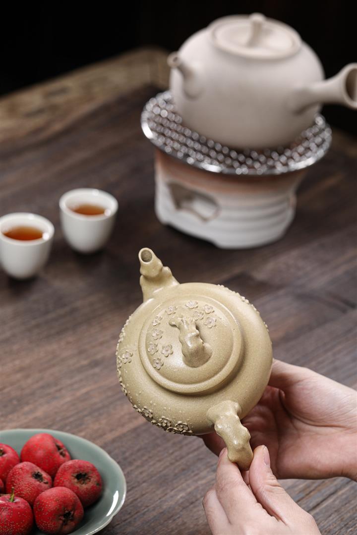 320cc原礦本綠泥梅花報春泡茶壺POT9554