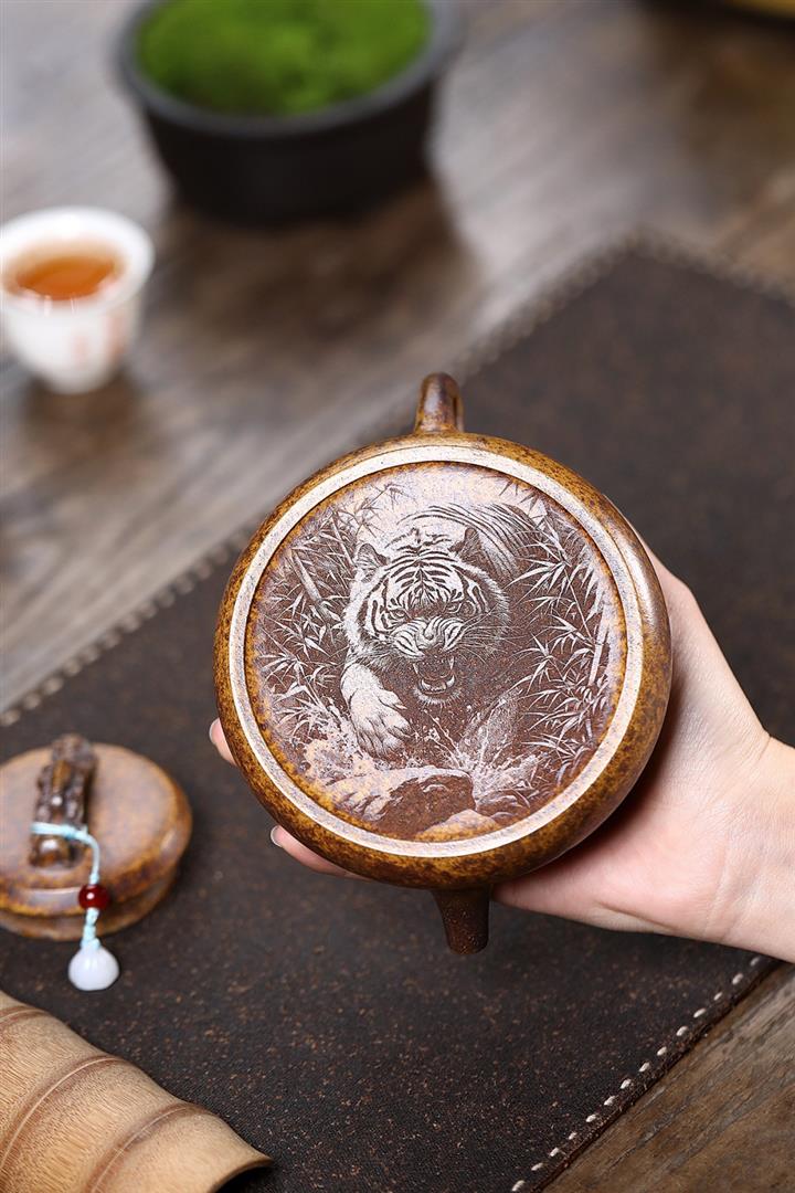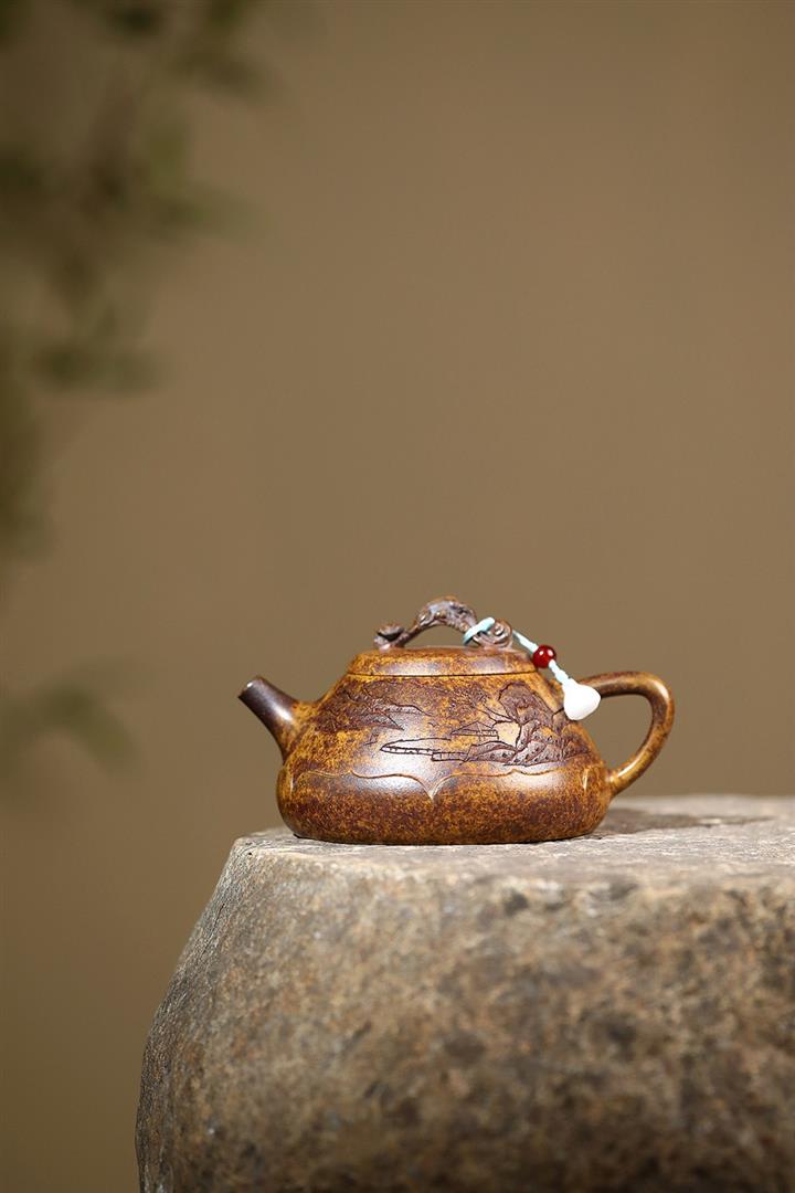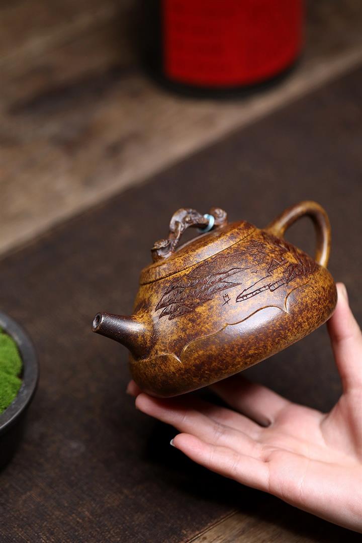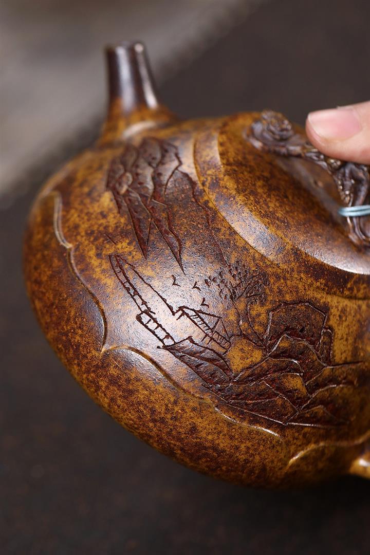 竹段原礦龍骨金砂手刻字畫紫砂壺工堂禮品茶具壺pot3787