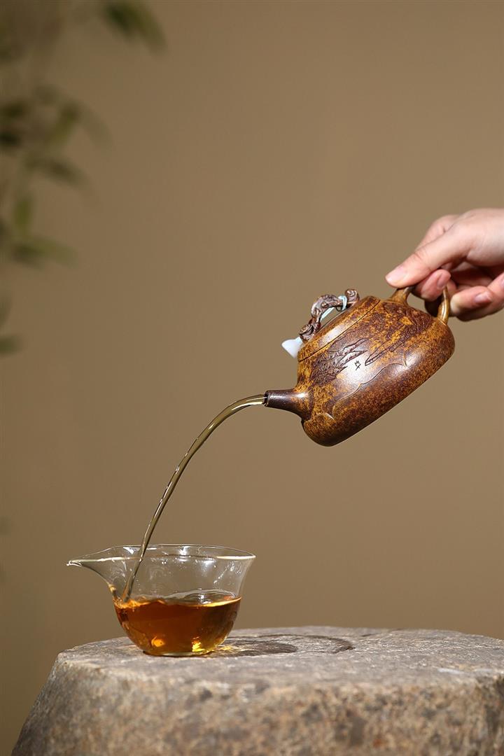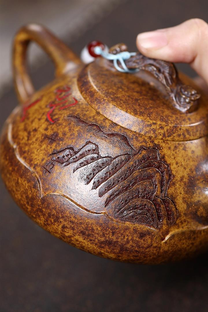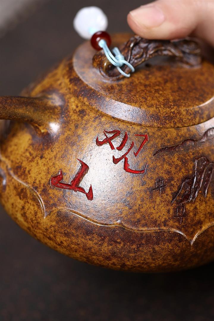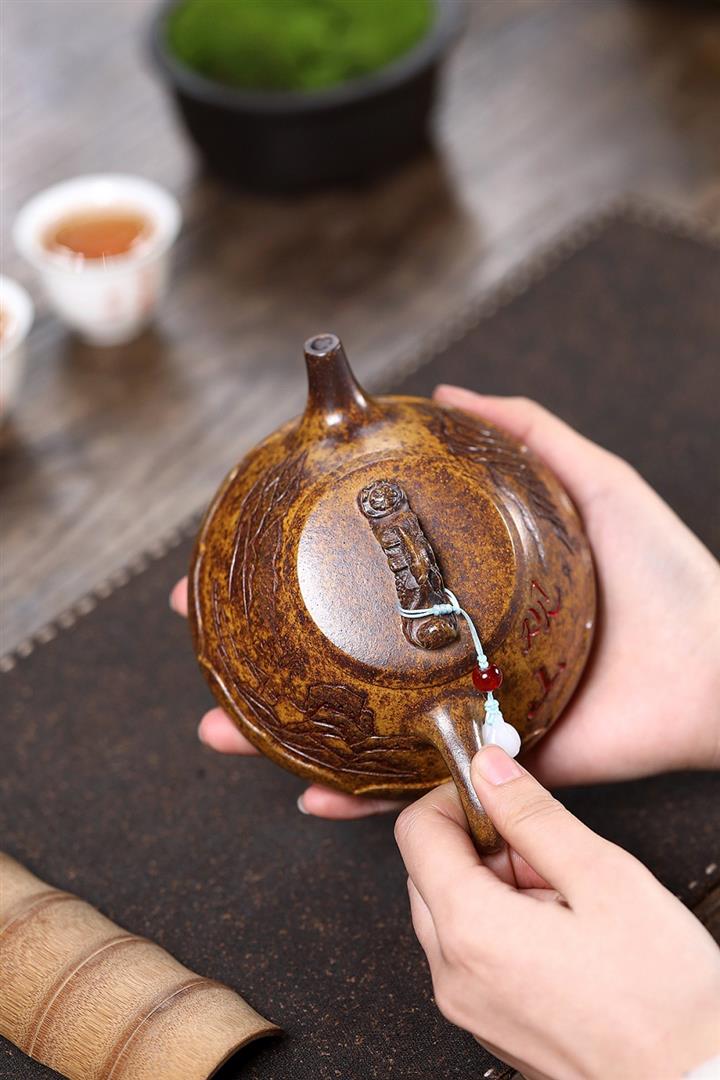鳳鳴原礦龍血砂茶具手刻紫砂壺工堂禮品茶具壺pot3786