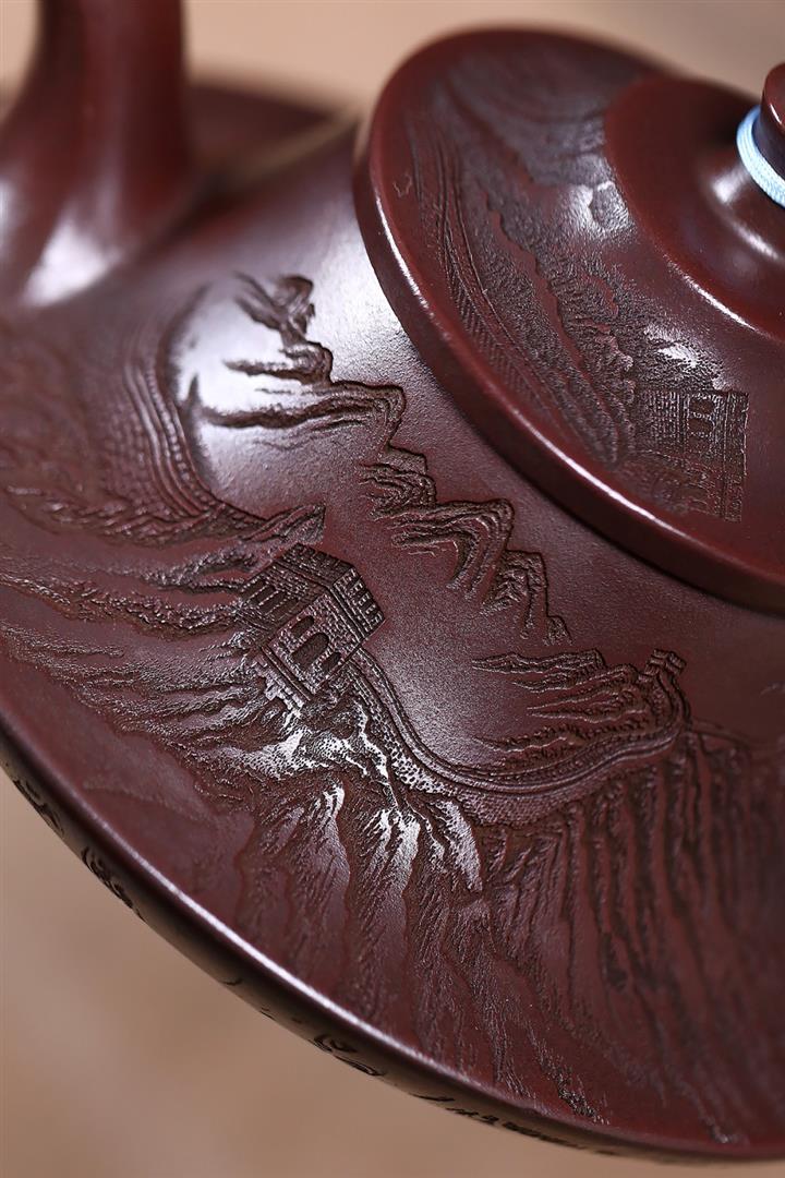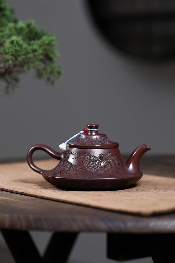 【作品介紹】此款壺形線條流暢,壺把,壺嘴,壺身壹氣呵成栩栩如生,是收藏把玩的好壺,泥料色澤古樸典雅,日久使用,漸露鋒芒,養成變化快,溫潤莊重,用其泡茶,使用的年代久,壺身就溫潤,泡出來的茶湯也就醇郁芳馨。