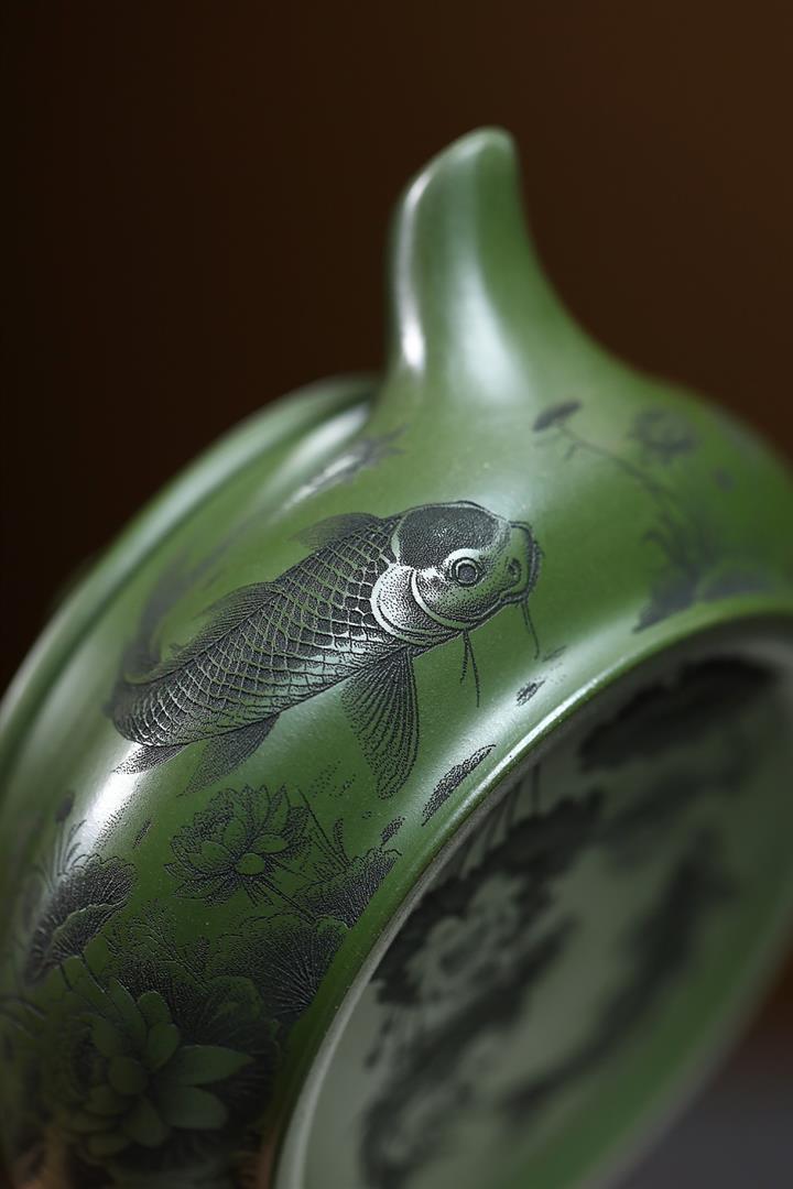 240cc原礦優質綠泥荷塘清趣明爐泡茶壺POT9575