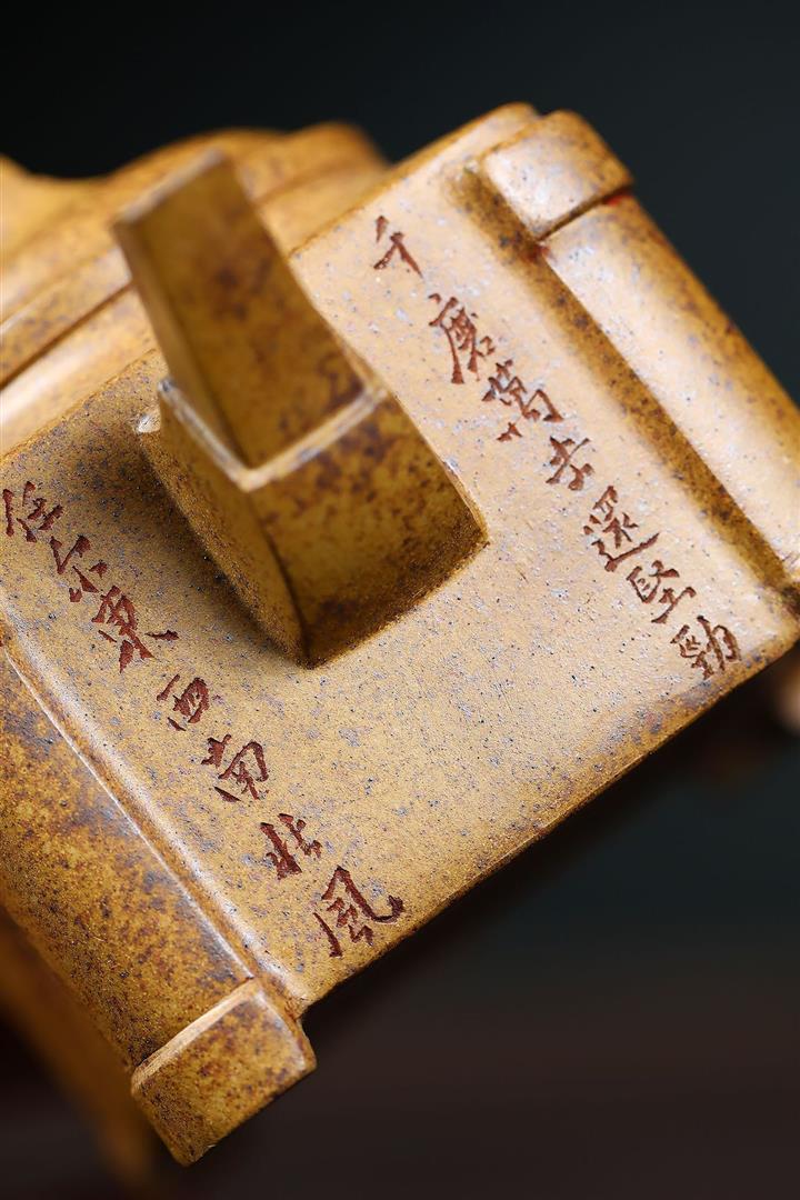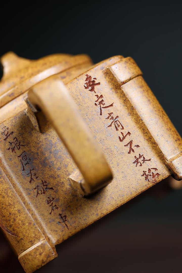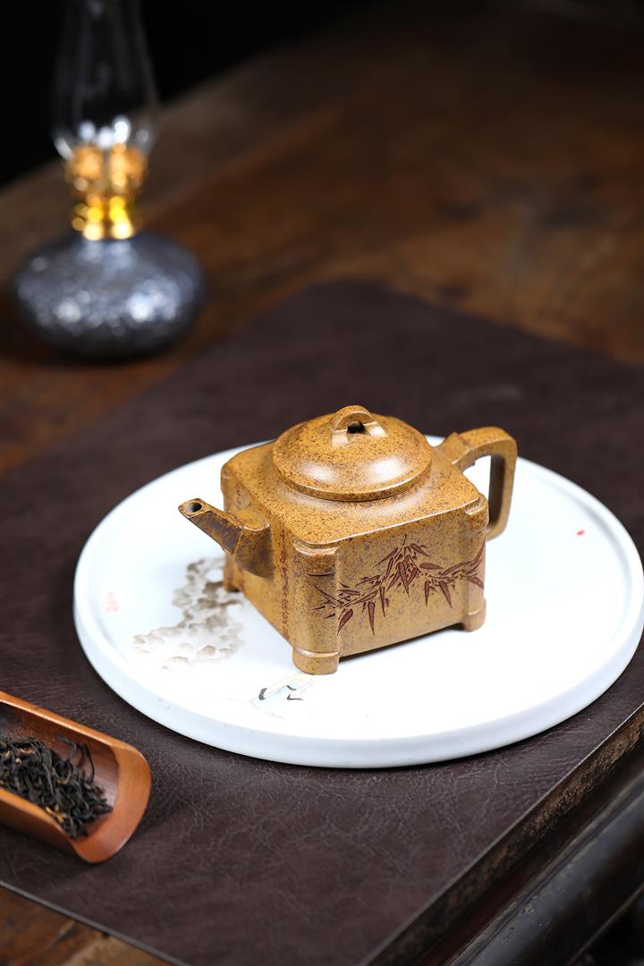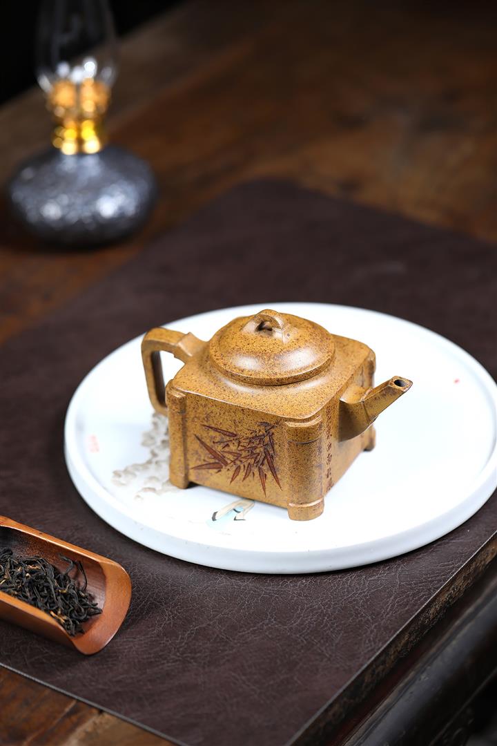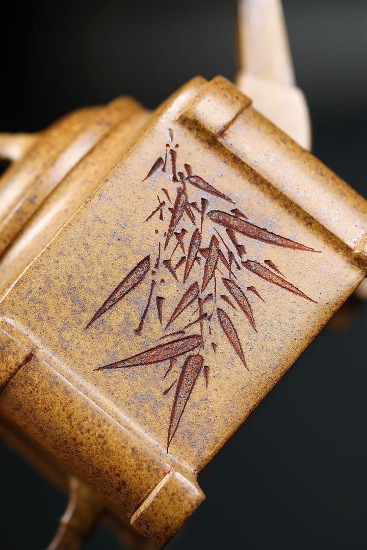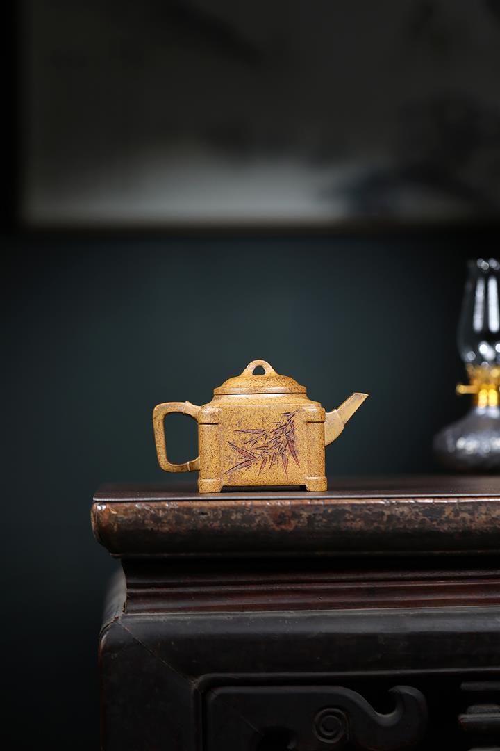 240cc古龍窯柴燒龍骨金砂四方刻竹泡茶壺POT9631