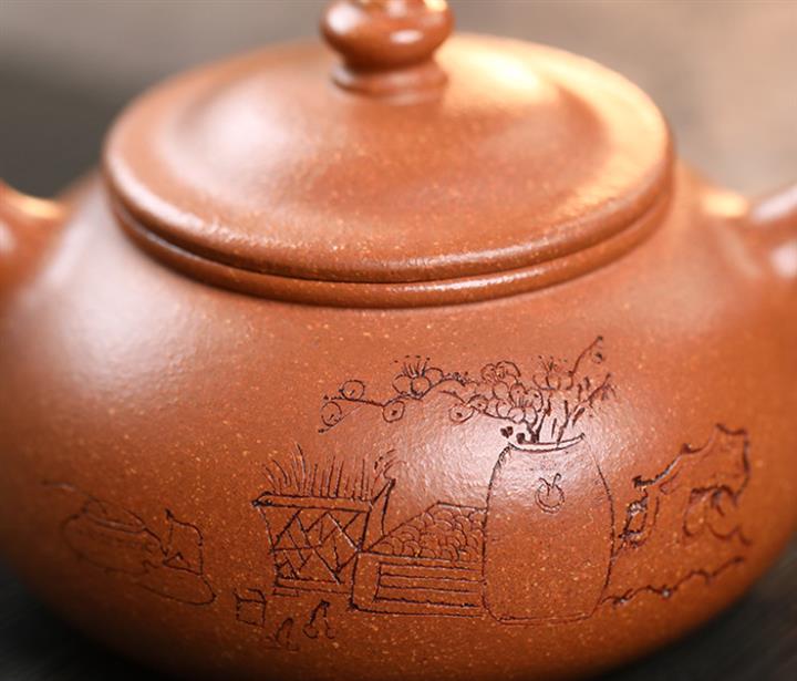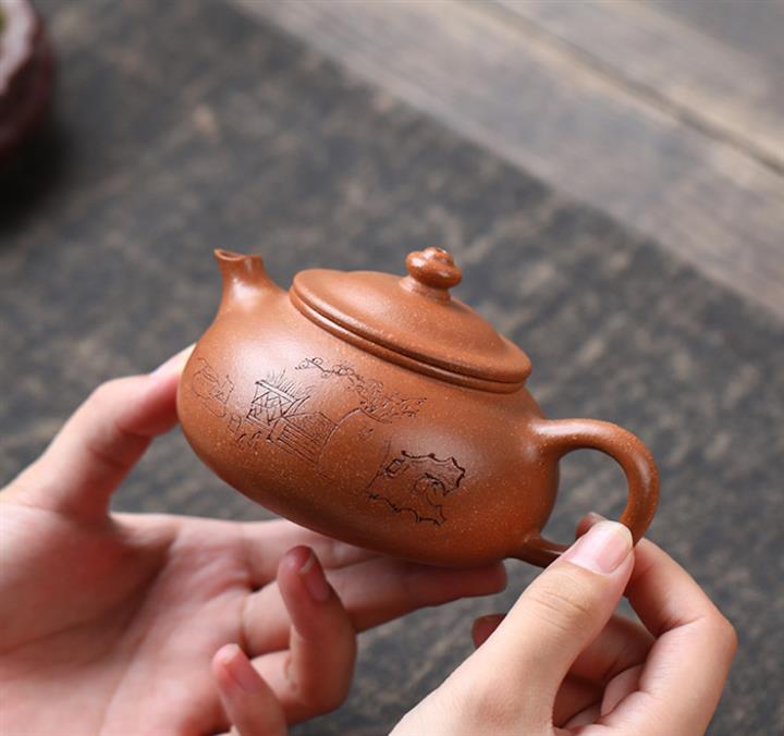 【泥料特點】砂土氣重,似淳實農民,日久使用,漸露鋒芒,養成變化,溫潤莊重。紫砂是壹種雙重氣孔結構的多孔性材質,氣孔微細,密度高。用紫砂壺沏茶,不失原味,且香不渙散,得茶之真香真味。紫砂使用越久,壺身色澤越發光亮照人,氣韻溫雅。紫砂壺長久使用器身會因撫摸擦拭,變得越發溫潤光澤。