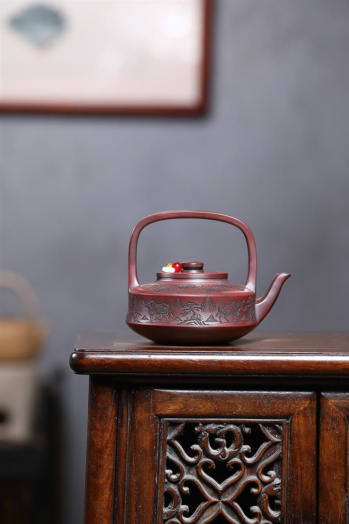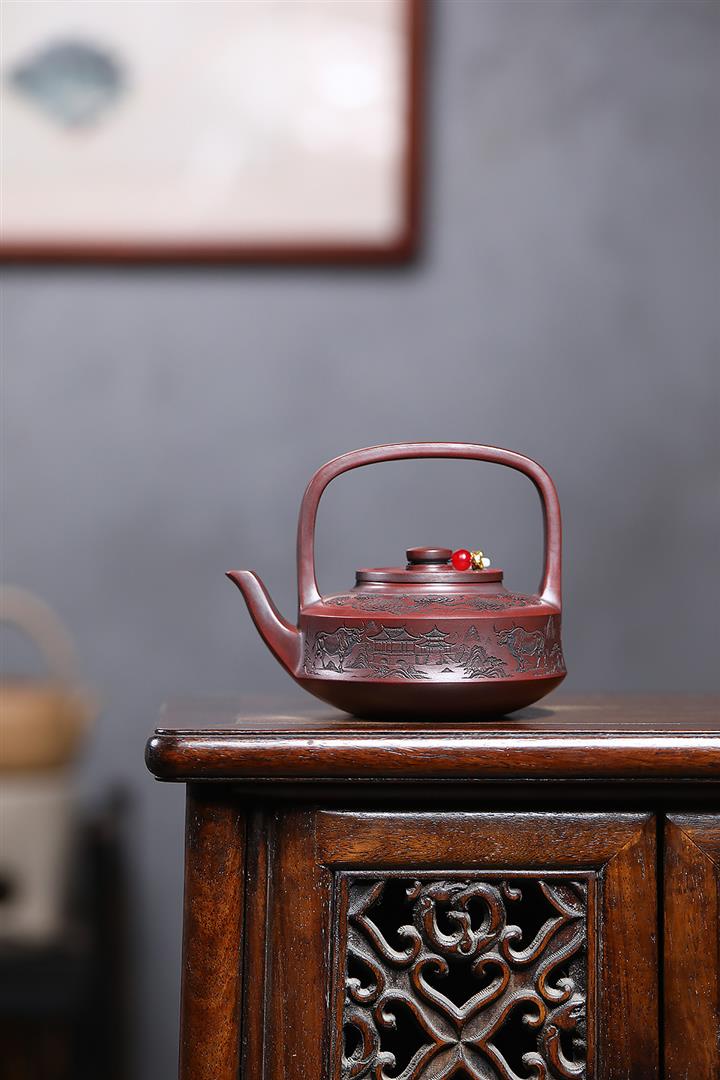 宜興朱泥紫砂工藝仿古手把壺
