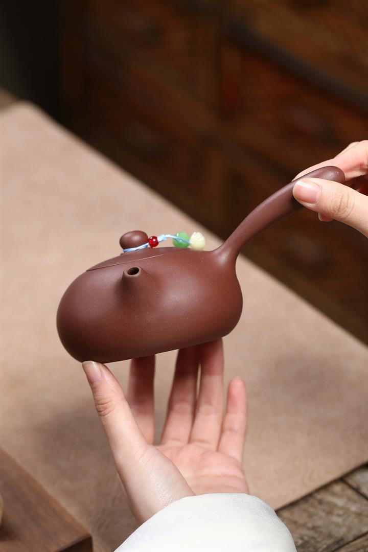 【作品介紹】此款壺形線條流暢,壺把,壺嘴,壺身壹氣呵成栩栩如生,是收藏把玩的好壺,泥料色澤古樸典雅,日久使用,漸露鋒芒,養成變化快,溫潤莊重,用其泡茶,使用的年代久,壺身就溫潤,泡出來的茶湯也就醇郁芳馨。