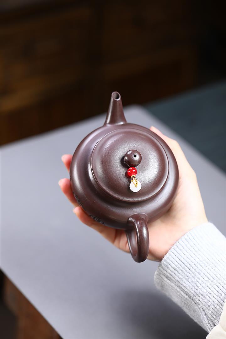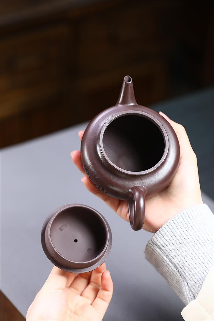 【作品介紹】此款壺形線條流暢,壺把,壺嘴,壺身壹氣呵成栩栩如生,是收藏把玩的好壺,泥料色澤古樸典雅,日久使用,漸露鋒芒,養成變化快,溫潤莊重,用其泡茶,使用的年代久,壺身就溫潤,泡出來的茶湯也就醇郁芳馨。