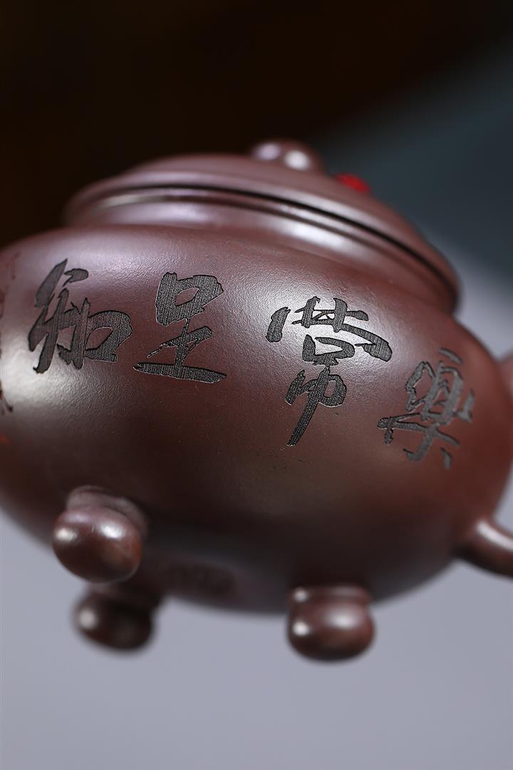 原礦紫泥歲寒三友漢瓦茶壺POT7468