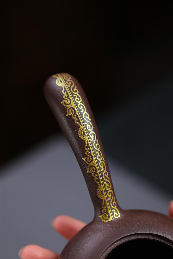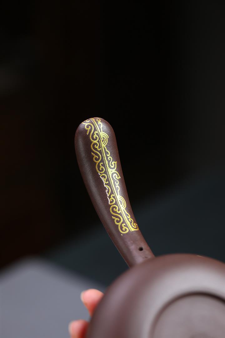 紫砂壺名家老紫泥刻繪周盤壺POT4009