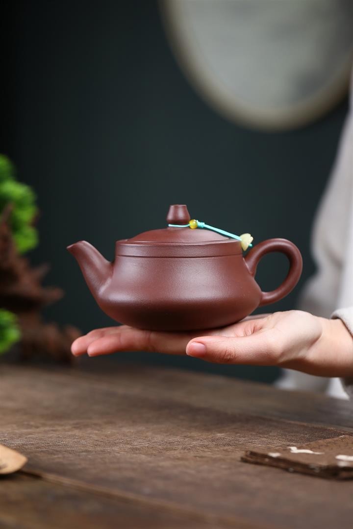 【作品介紹】此款壺形線條流暢,壺把,壺嘴,壺身壹氣呵成栩栩如生,是收藏把玩的好壺,泥料色澤古樸典雅,日久使用,漸露鋒芒,養成變化快,溫潤莊重,用其泡茶,使用的年代久,壺身就溫潤,泡出來的茶湯也就醇郁芳馨。