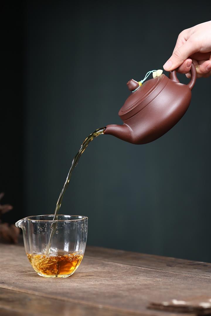 【泥料特點】砂土氣重,似淳實農民,日久使用,漸露鋒芒,養成變化,溫潤莊重。紫砂是壹種雙重氣孔結構的多孔性材質,氣孔微細,密度高。用紫砂壺沏茶,不失原味,且香不渙散,得茶之真香真味。紫砂使用越久,壺身色澤越發光亮照人,氣韻溫雅。紫砂壺長久使用器身會因撫摸擦拭,變得越發溫潤光澤。