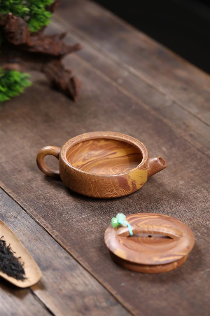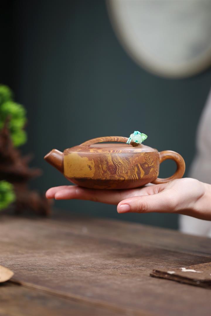 【泥料特點】砂土氣重,似淳實農民,日久使用,漸露鋒芒,養成變化,溫潤莊重。紫砂是壹種雙重氣孔結構的多孔性材質,氣孔微細,密度高。用紫砂壺沏茶,不失原味,且香不渙散,得茶之真香真味。紫砂使用越久,壺身色澤越發光亮照人,氣韻溫雅。紫砂壺長久使用器身會因撫摸擦拭,變得越發溫潤光澤。