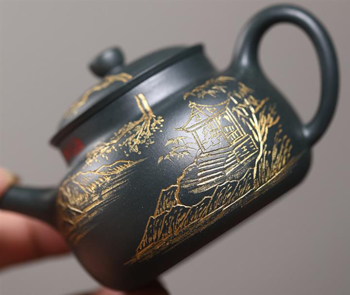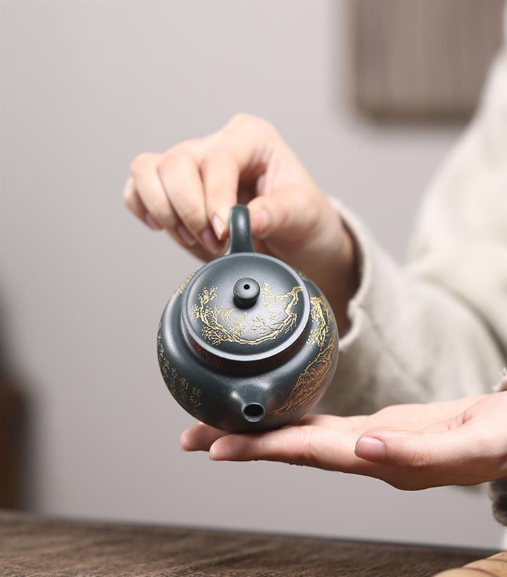 原礦天青泥金鐘紫砂壺POT4797