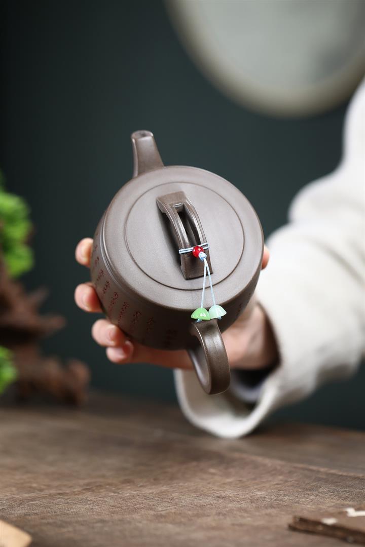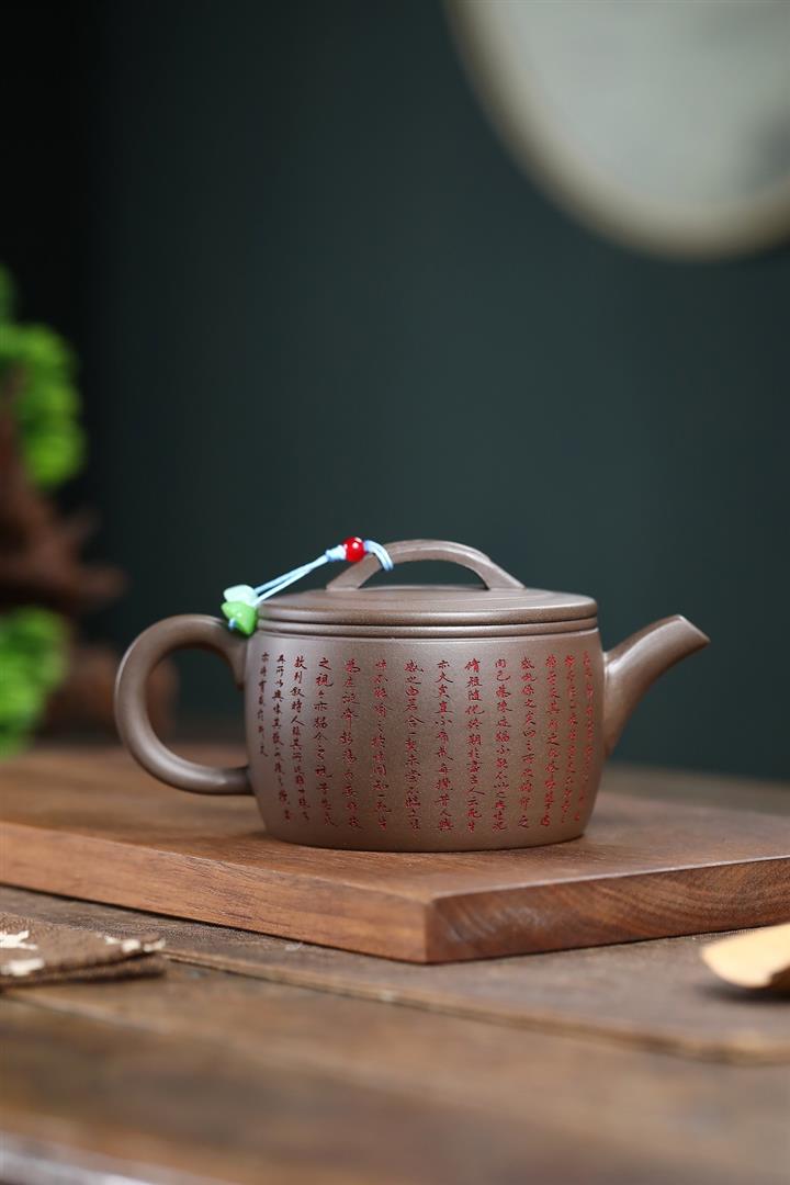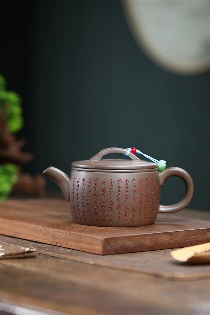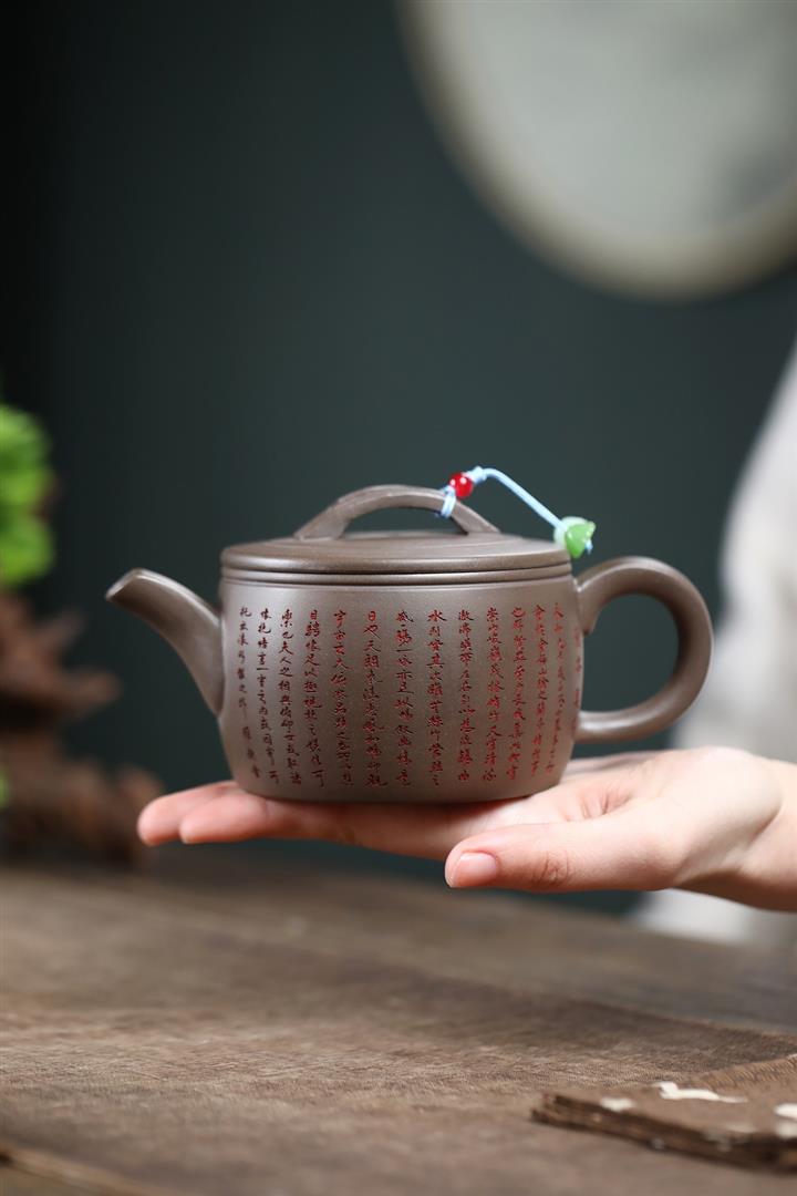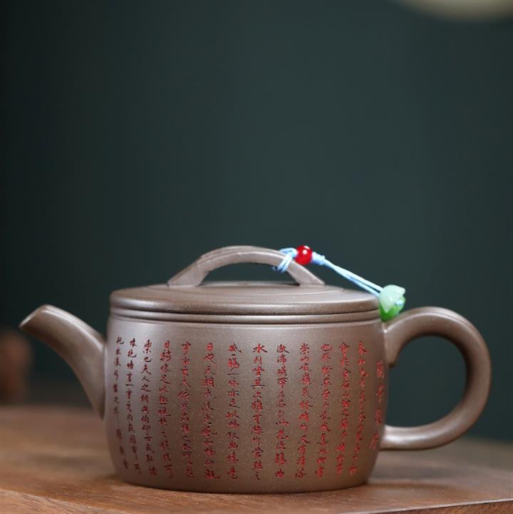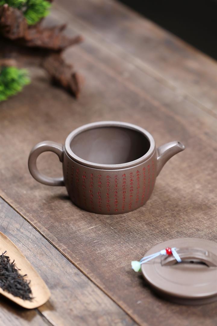 150cc原礦紫泥手工刻繪八方來財茶壺POT8465