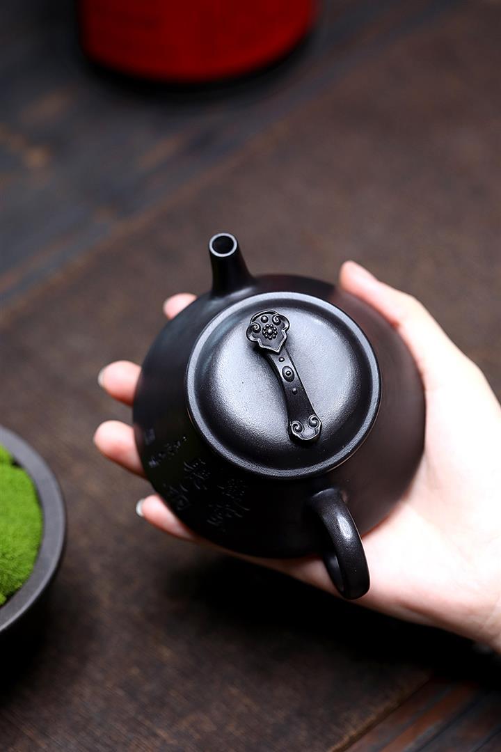 180cc原礦黑泥刻繪觀雲聽雨泡茶壺POT9716