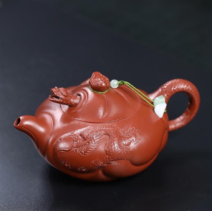 230cc原礦朱泥雕刻魚躍龍門茶壺POT8646