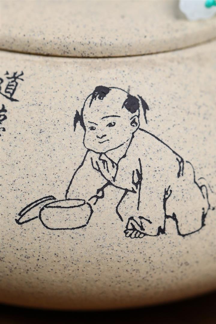 原礦墨綠泥描金銀湖石東亭茶壺POT7303