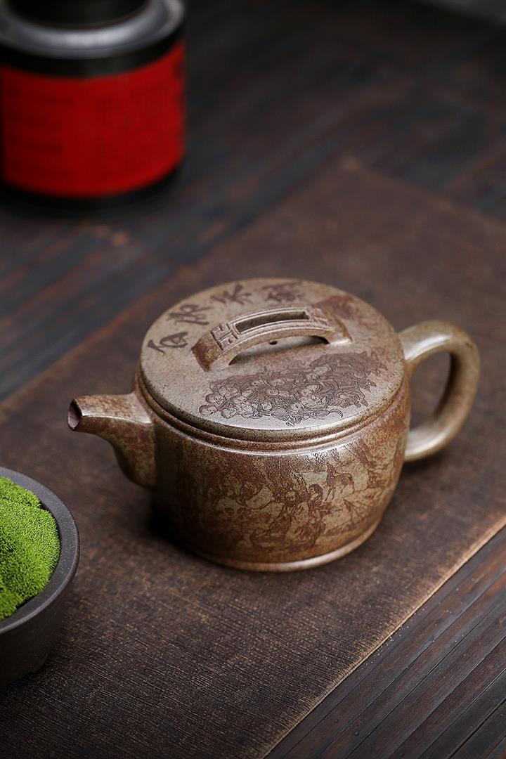 【泥料特點】砂土氣重,似淳實農民,日久使用,漸露鋒芒,養成變化,溫潤莊重。紫砂是壹種雙重氣孔結構的多孔性材質,氣孔微細,密度高。用紫砂壺沏茶,不失原味,且香不渙散,得茶之真香真味。紫砂使用越久,壺身色澤越發光亮照人,氣韻溫雅。紫砂壺長久使用器身會因撫摸擦拭,變得越發溫潤光澤。