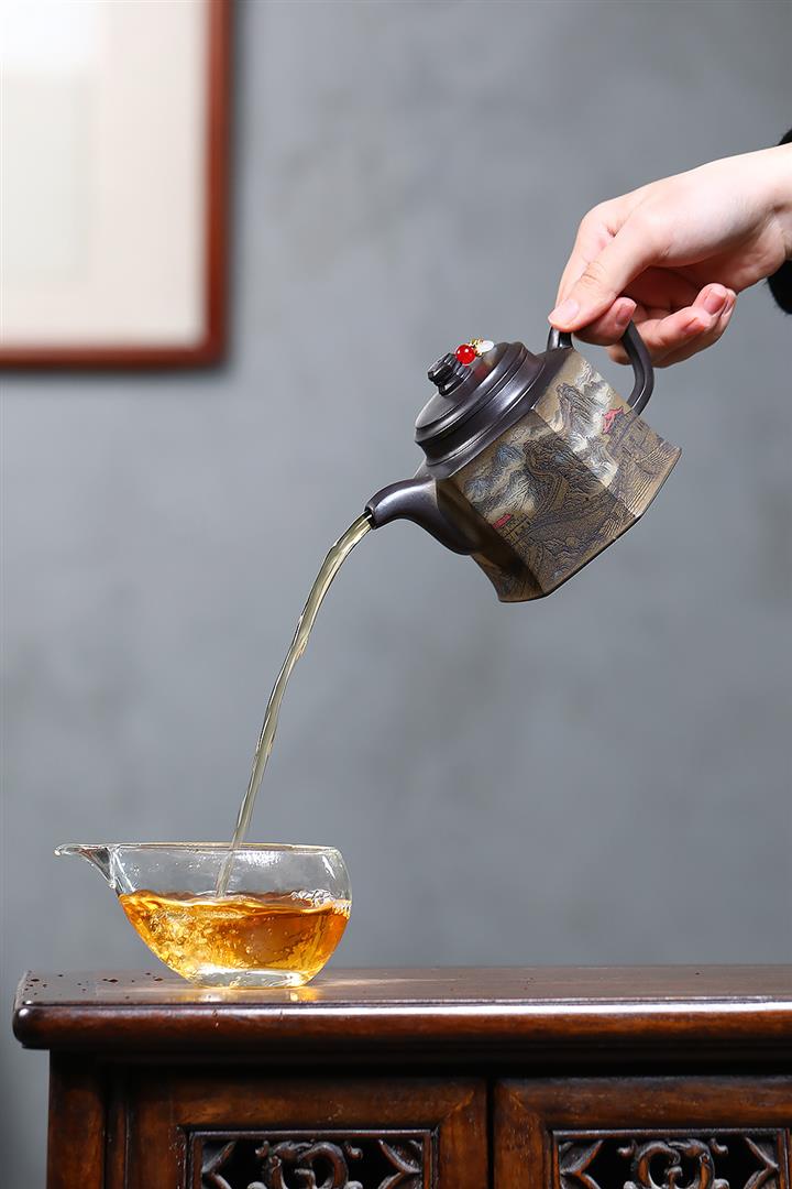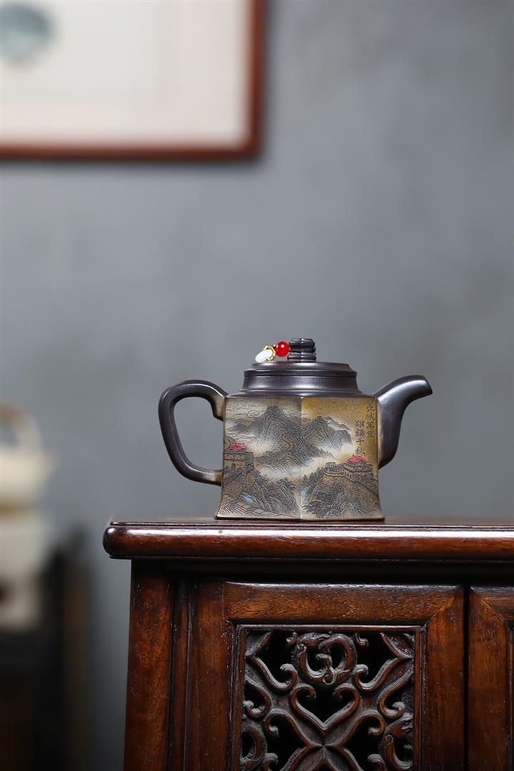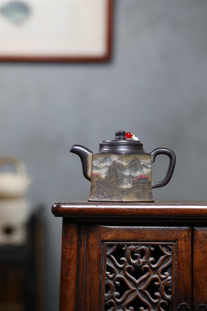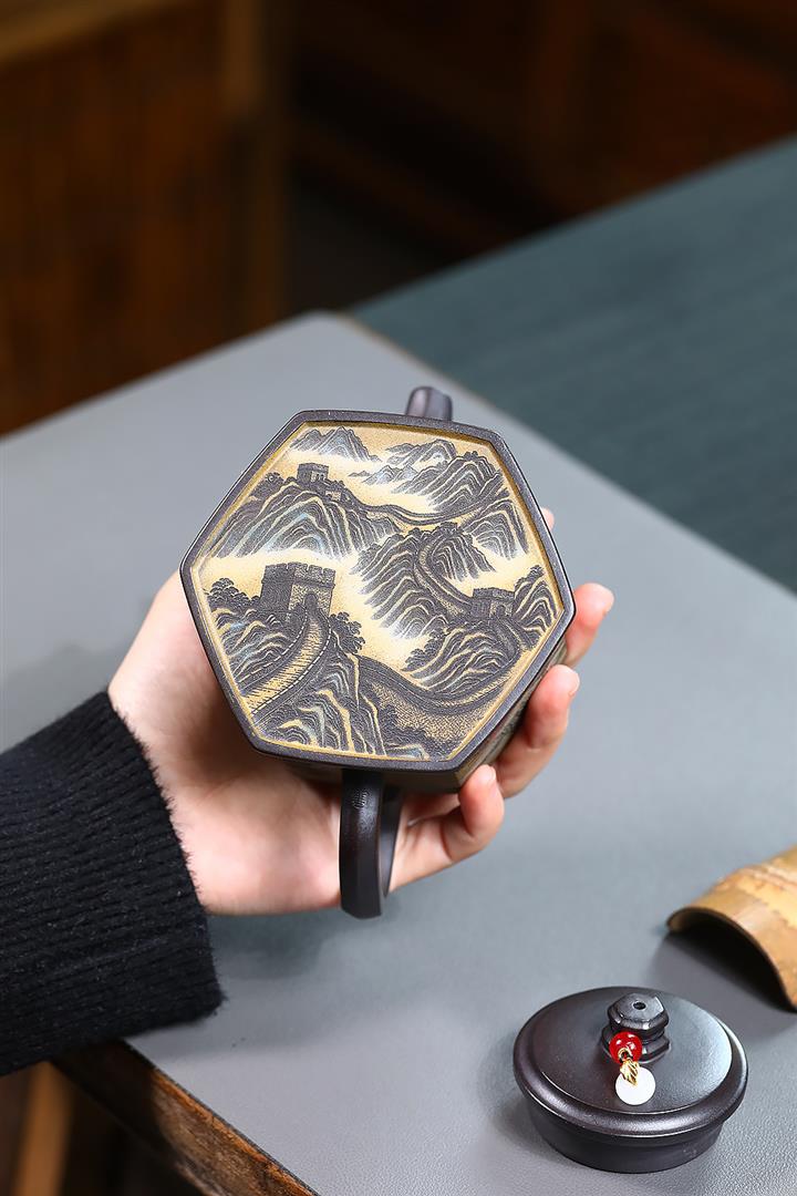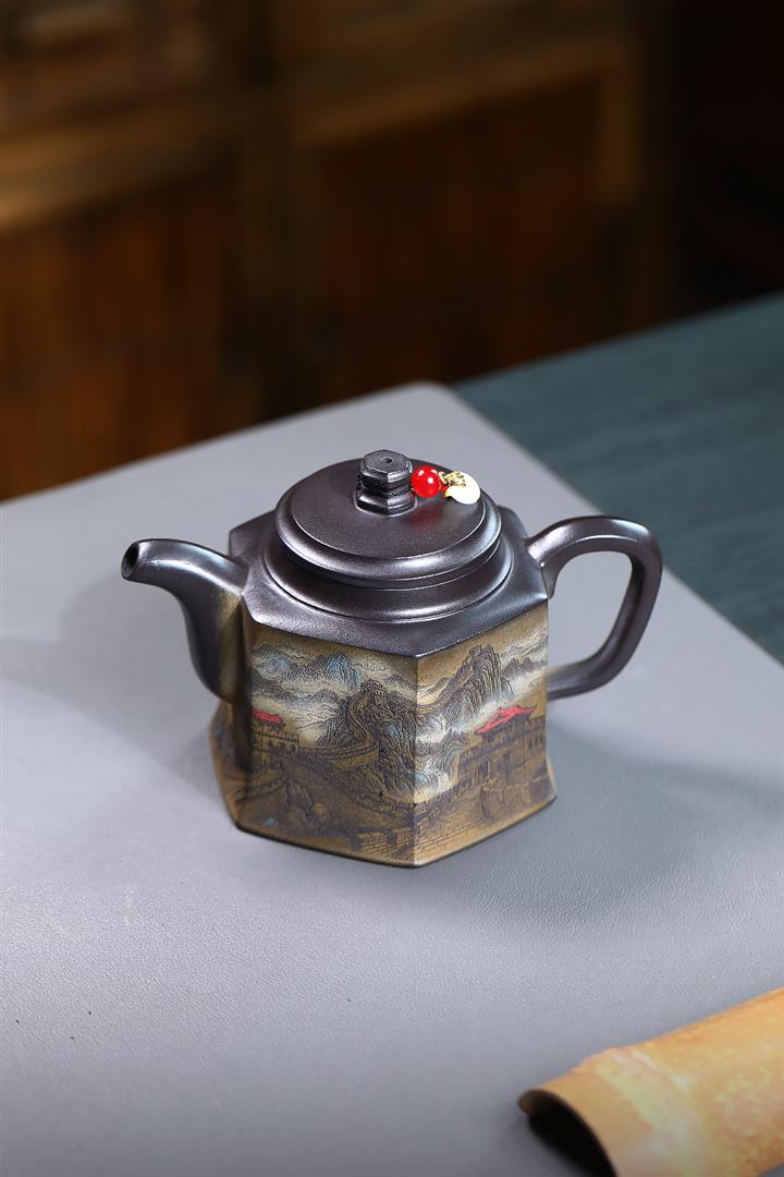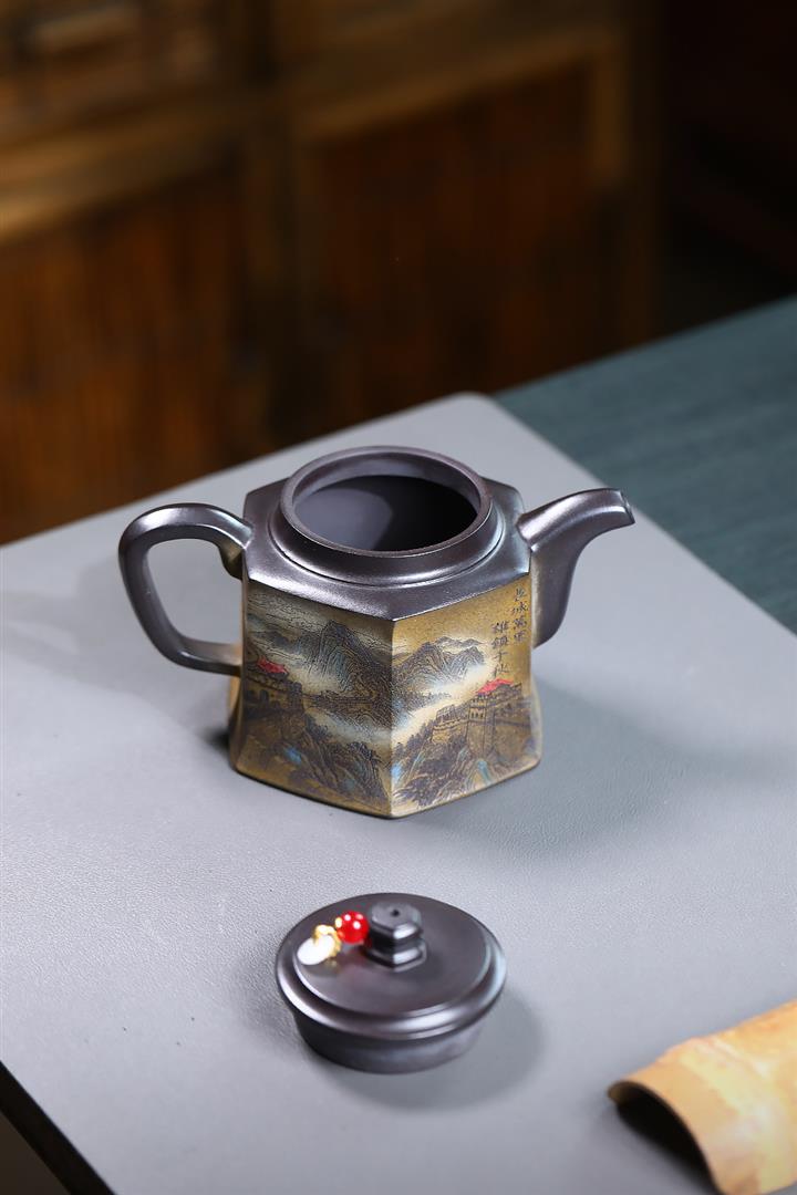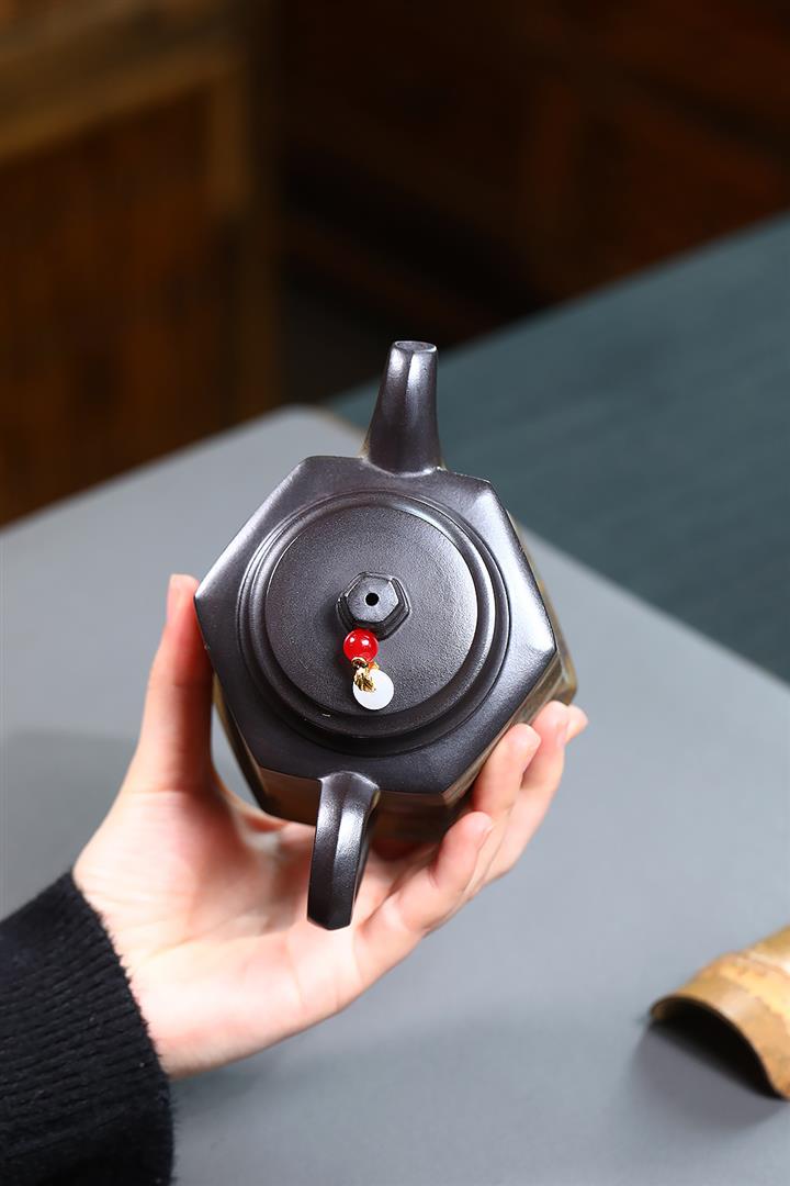 320cc原礦玄鐵石黃六方金鐘泡茶壺POT9748