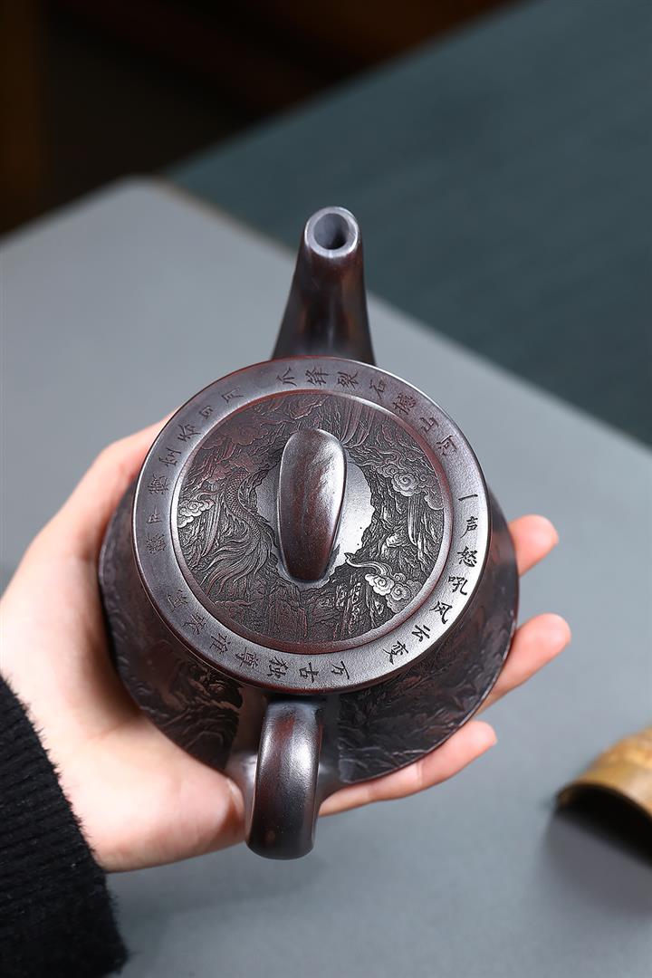 原礦紫泥祥瑞提梁紫砂壺POT4852