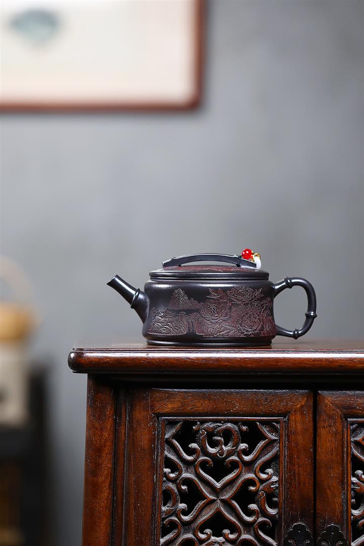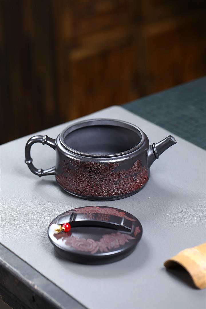 330cc原礦玄鐵石黃錦繡漢瓦茶壺POT9751