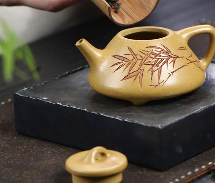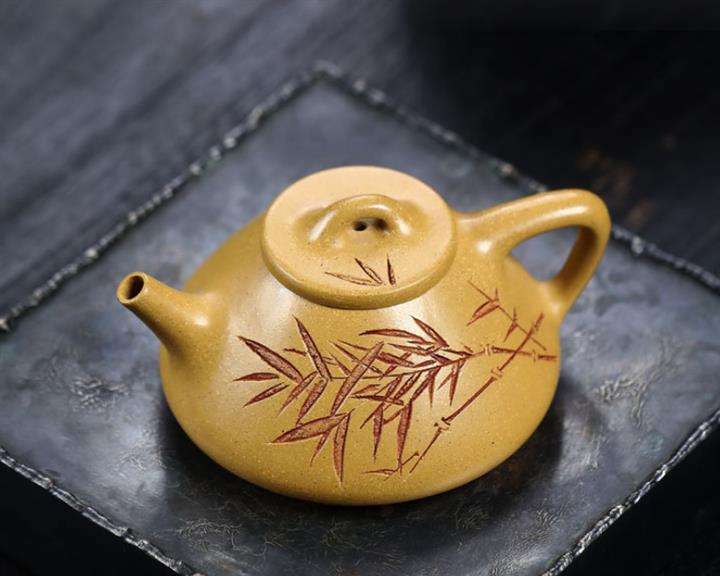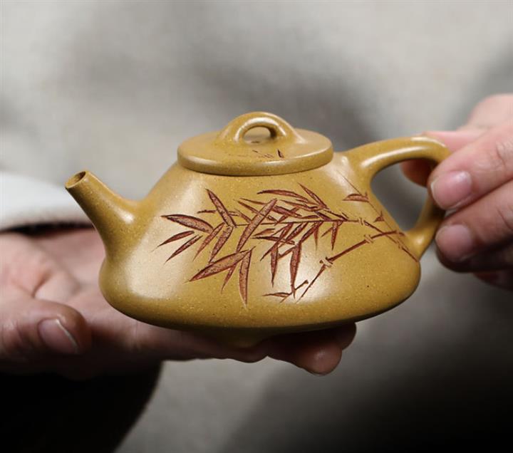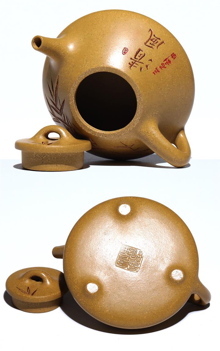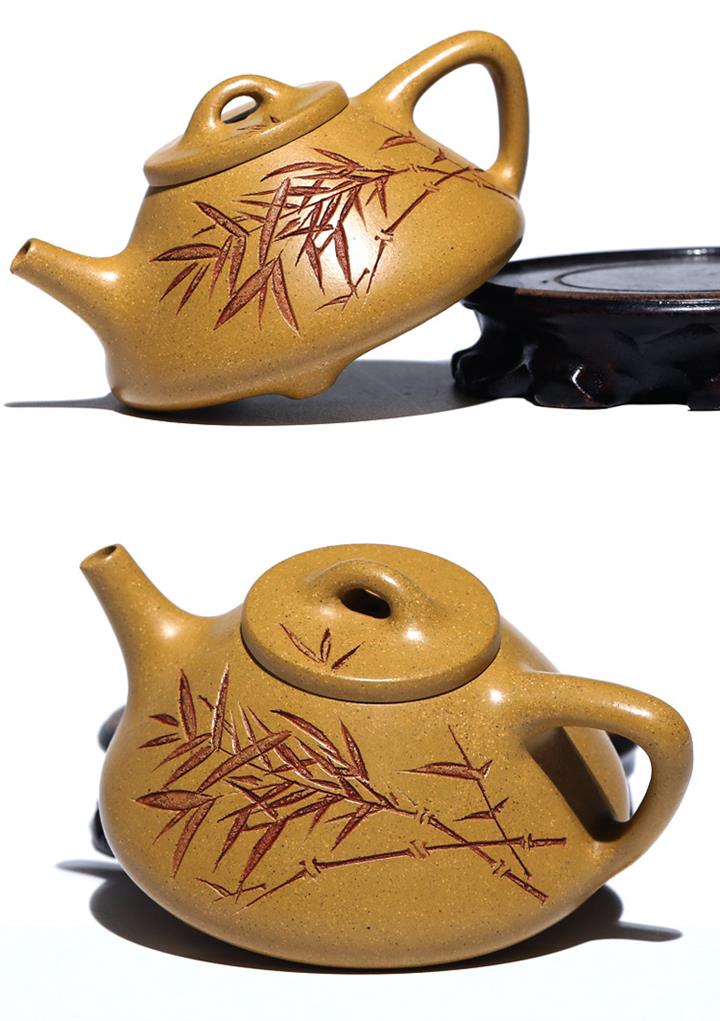 150cc原礦黃金段竹葉清風子冶石瓢茶壺POT9755