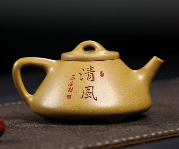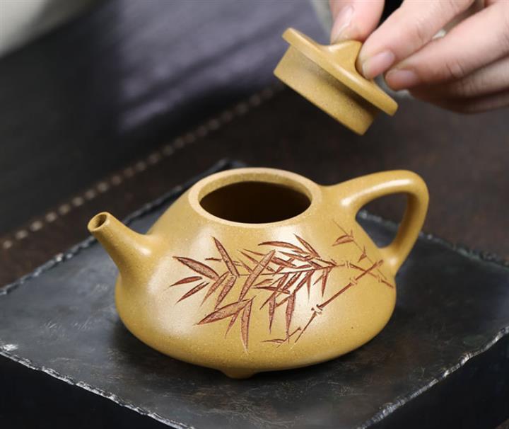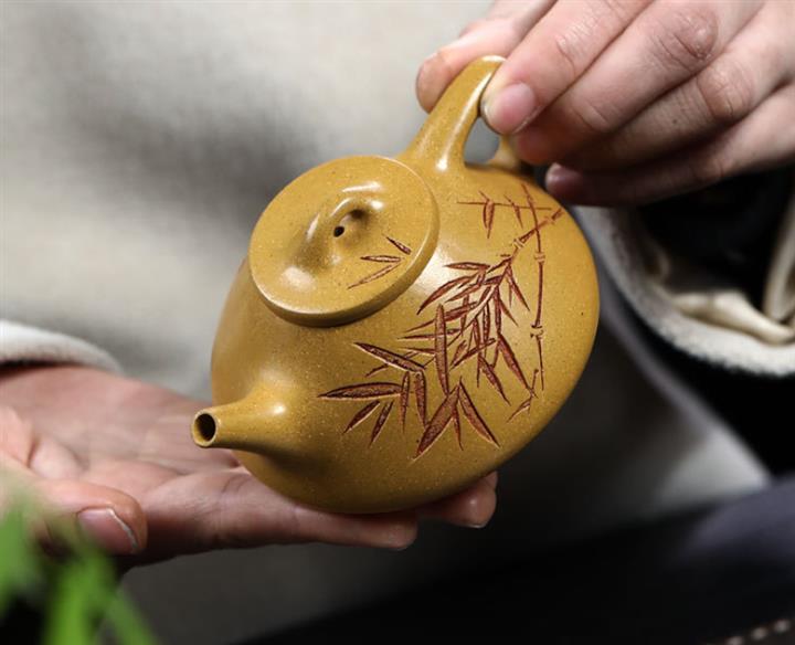 【泥料特點】砂土氣重,似淳實農民,日久使用,漸露鋒芒,養成變化,溫潤莊重。紫砂是壹種雙重氣孔結構的多孔性材質,氣孔微細,密度高。用紫砂壺沏茶,不失原味,且香不渙散,得茶之真香真味。紫砂使用越久,壺身色澤越發光亮照人,氣韻溫雅。紫砂壺長久使用器身會因撫摸擦拭,變得越發溫潤光澤。