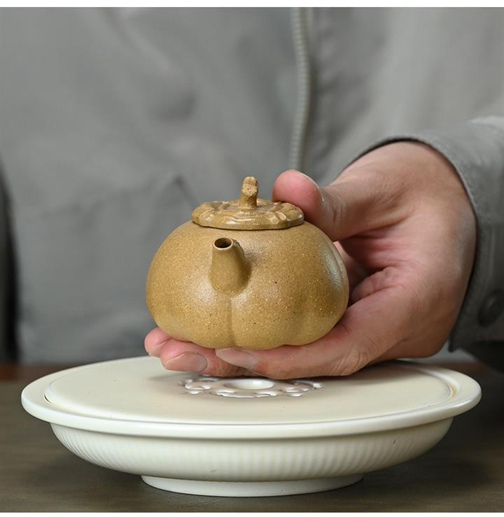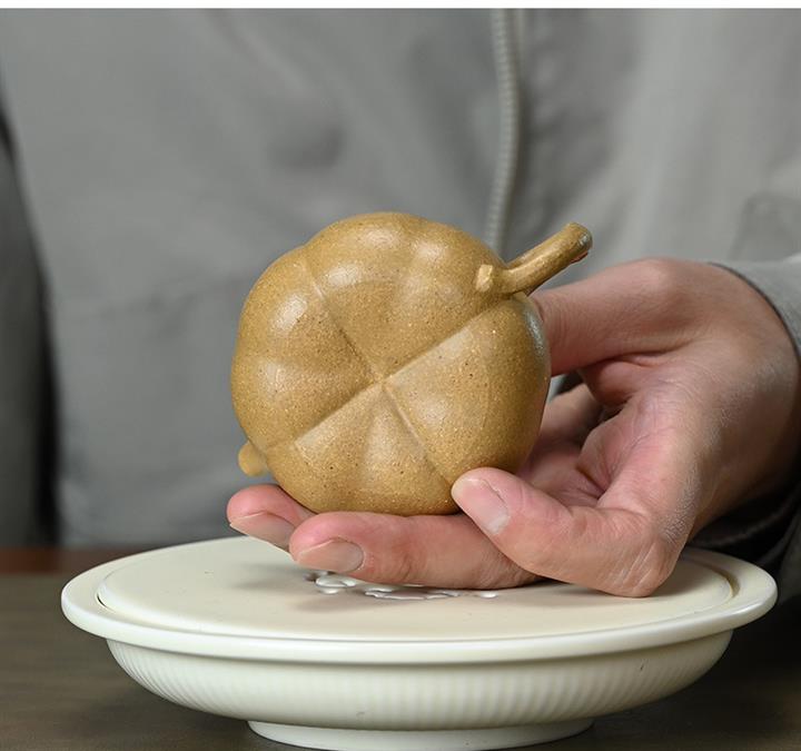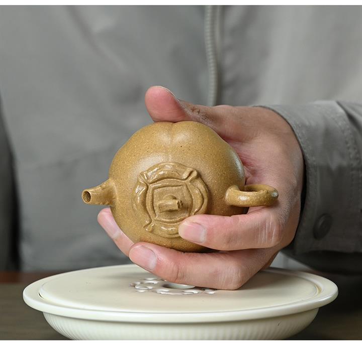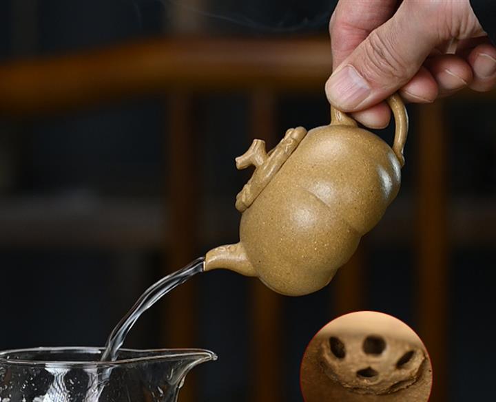 【泥料特點】砂土氣重,似淳實農民,日久使用,漸露鋒芒,養成變化,溫潤莊重。紫砂是壹種雙重氣孔結構的多孔性材質,氣孔微細,密度高。用紫砂壺沏茶,不失原味,且香不渙散,得茶之真香真味。紫砂使用越久,壺身色澤越發光亮照人,氣韻溫雅。紫砂壺長久使用器身會因撫摸擦拭,變得越發溫潤光澤。